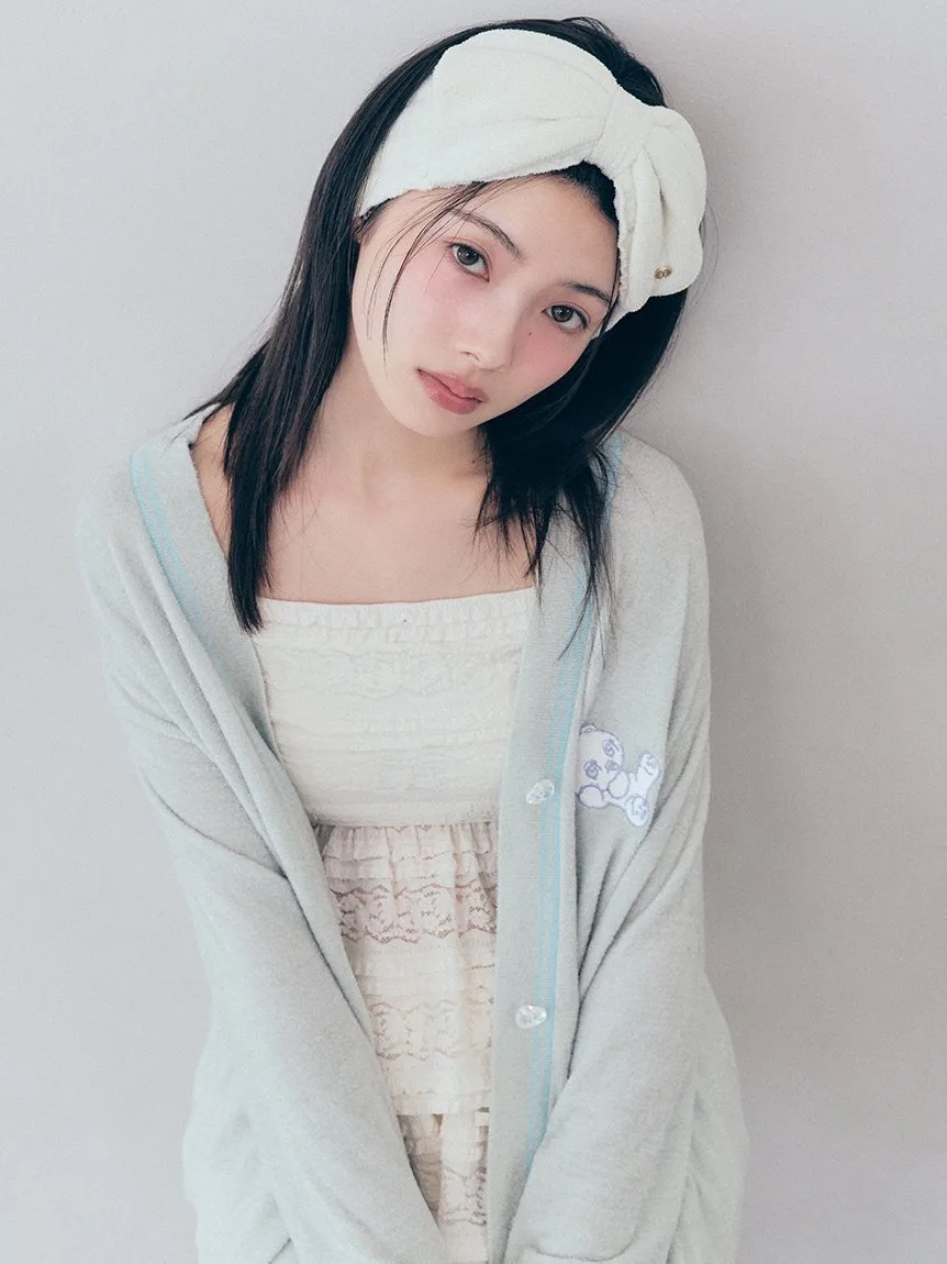 Этот вязаный кардиган украшен вышитым изображением «ледяного малыша», отдыхающего на льду, и изготовлен из материала «Sorbet Touch Cool», который обеспечивает ощущение прохлады и защиту от УФ-излучения.