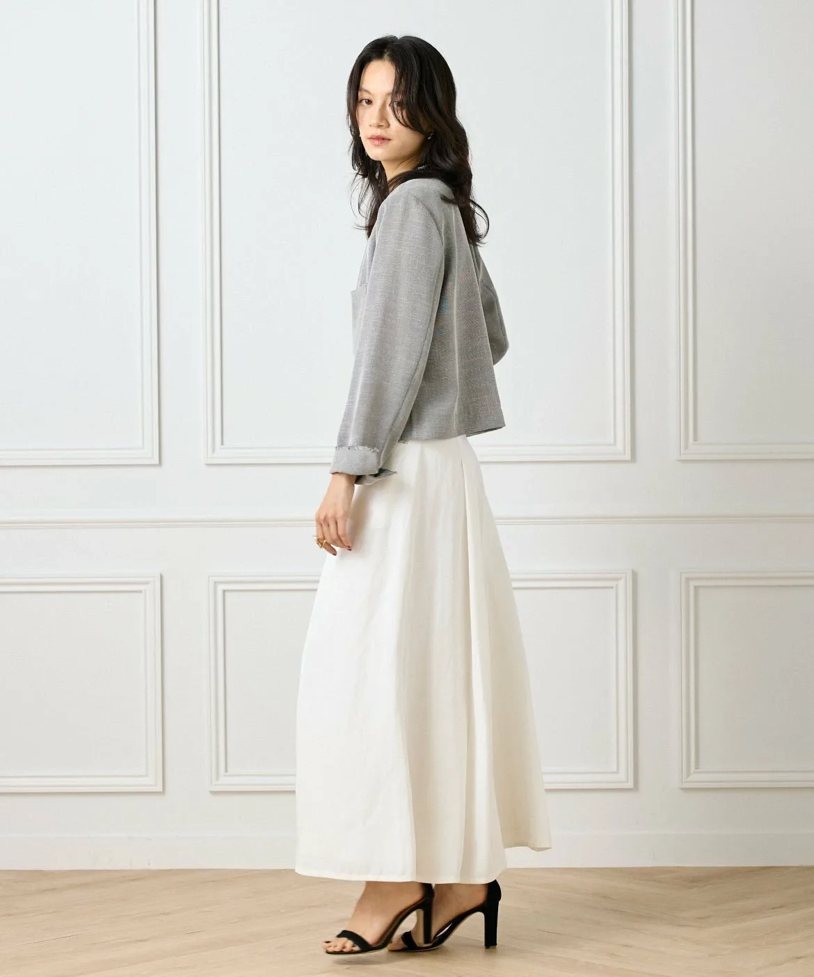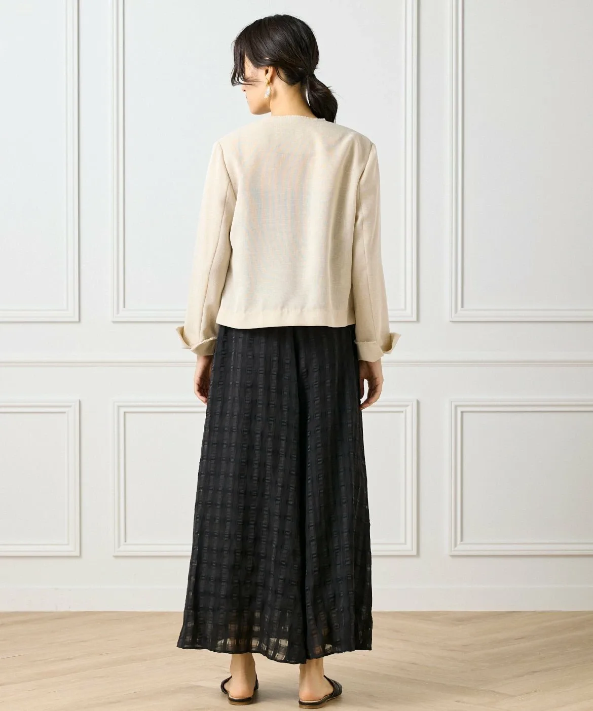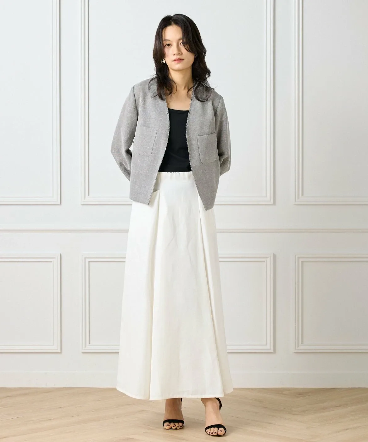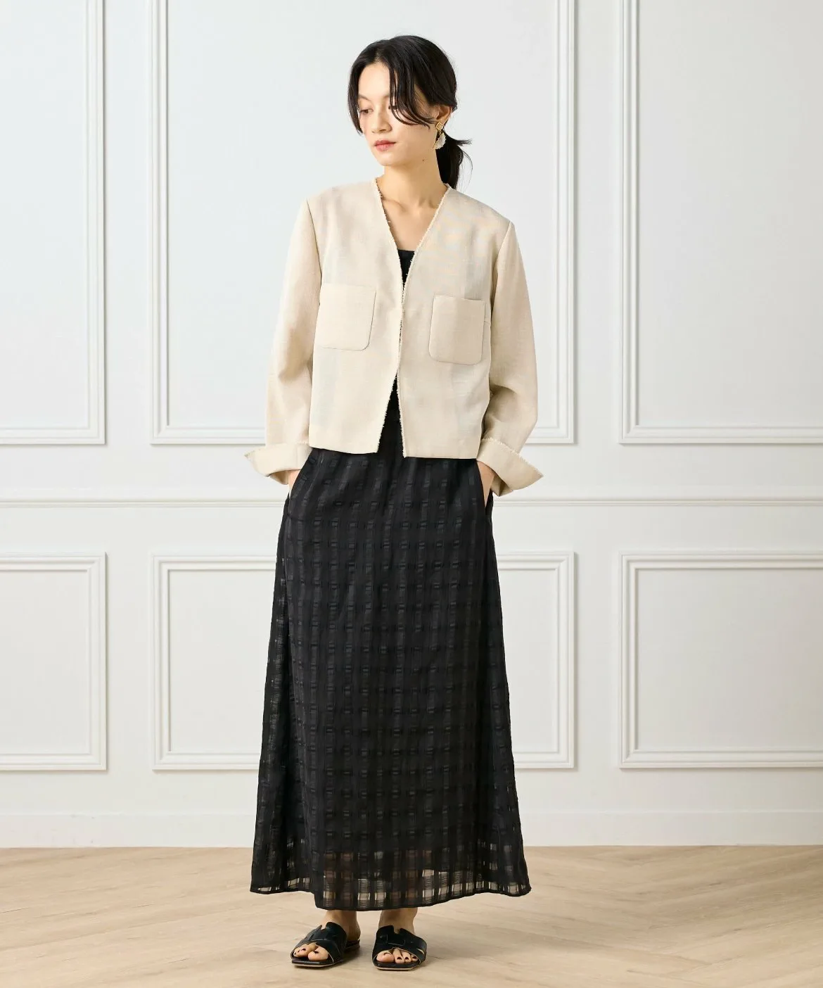 V-образный вырез спереди придает этой вещи четкий вид, а компактная форма создает элегантный образ. Необработанный край горловины добавляет акцент. Отсутствие подкладки делает ее легкой, похожей на кардиган вещью, которую можно носить как с нарядной одеждой, так и с джинсами для повседневного образа.