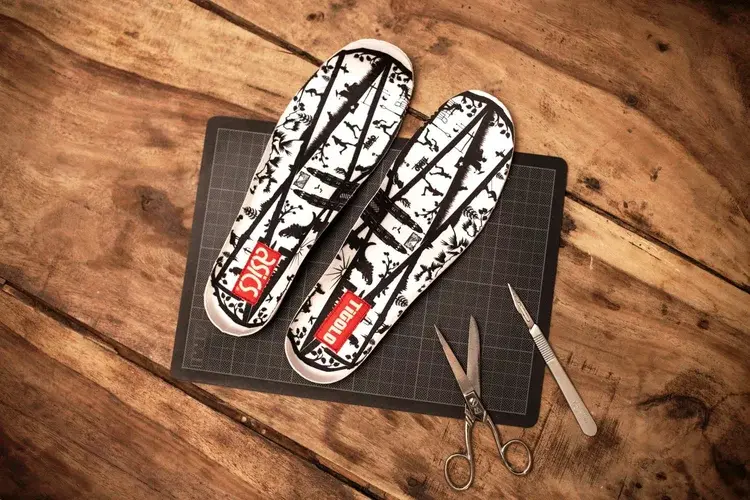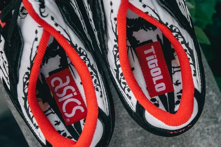 Швейцарский бутик кроссовок Titolo в партнерстве с ASICS выпустил Gel Lyte 3 'Papercut', чтобы отпраздновать открытие своего нового магазина в Цюрихе, Швейцария, в 2015 году. потолок. Графические принты на белой коже с тигровыми полосками, воротник из неопреновой сетки и стелька отсылают к дизайну потолка. Кроссовки также имеют черный замшевый верх с перфорированным носком, разделенным язычком и красными акцентами.