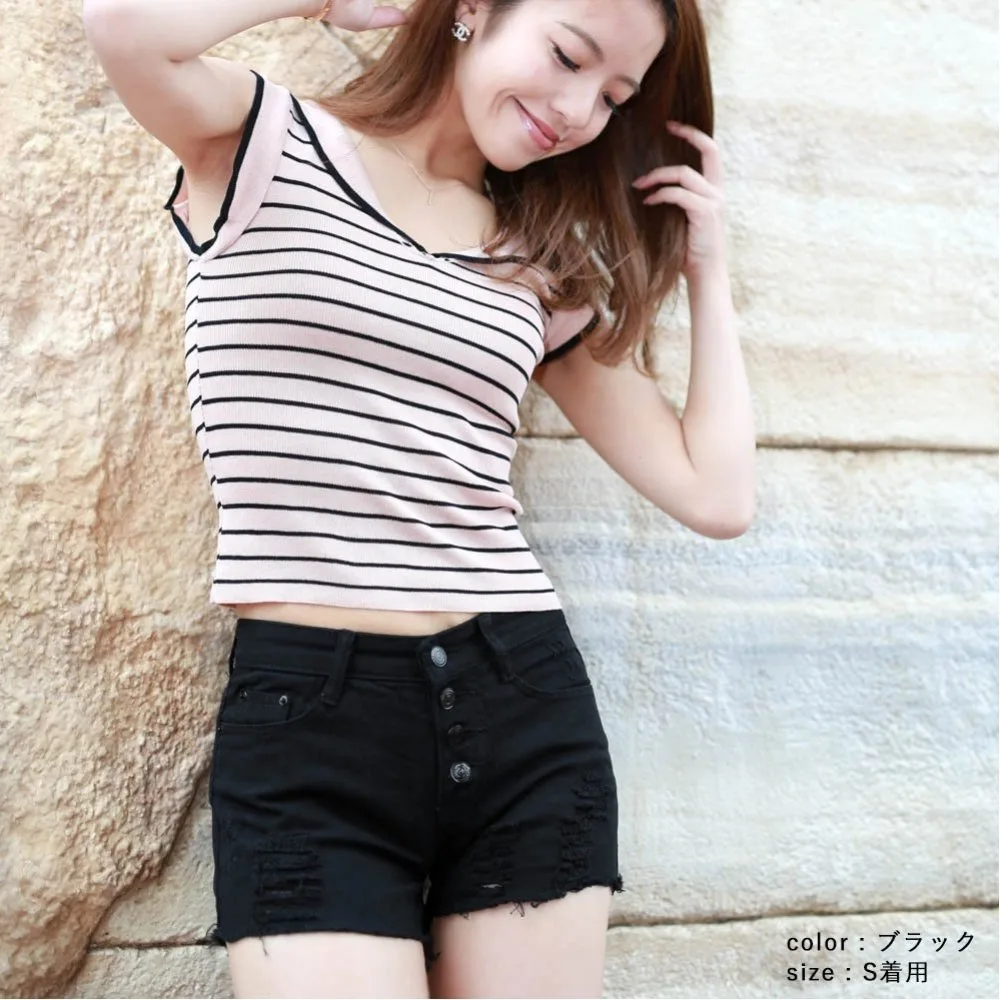 Простой дизайн с рваными элементами и пуговицами спереди в качестве изюминки