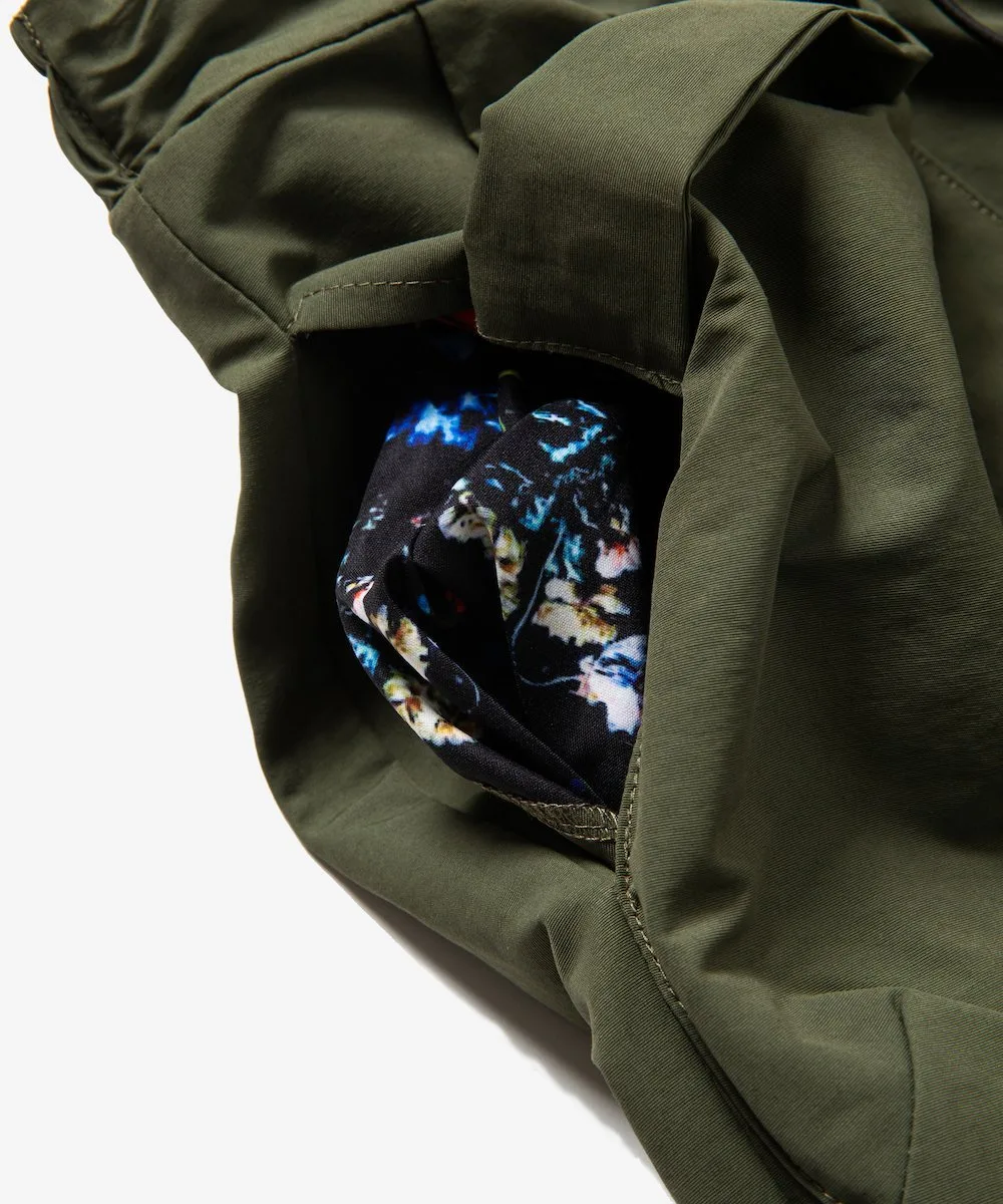 Верхний слой обеспечивает легкий доступ, средний слой имеет карман с клапаном для безопасности, а боковые карманы удобны для повседневного использования. Силуэт платья широкий и зауженный, плавно сужающийся от бедер к низу, с ластовицей в области промежности, обеспечивающей свободу движений и стильный вид. Внутренняя сторона пояса украшена оригинальной цветочной окантовкой, создающей дизайн, который привлекает внимание даже к скрытым деталям. Рост модели: 183 см, размеры: Черный/Большой Хаки, Синий/Средний