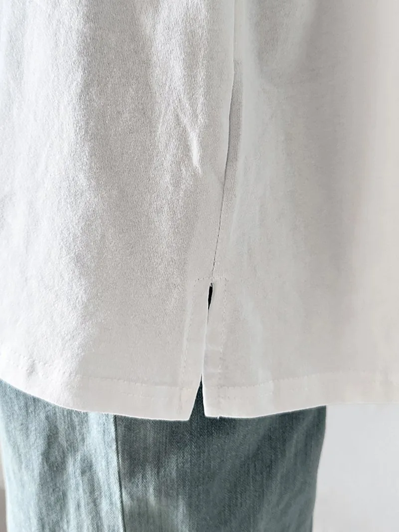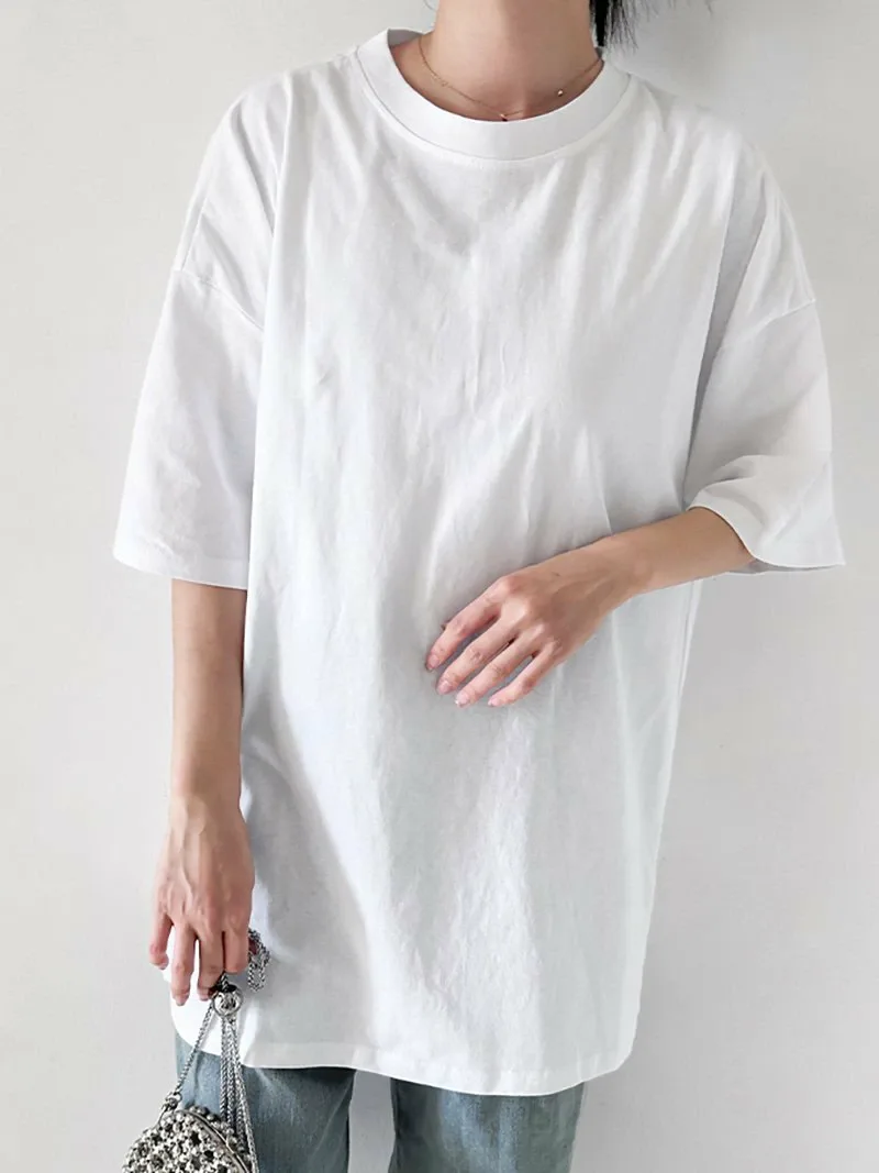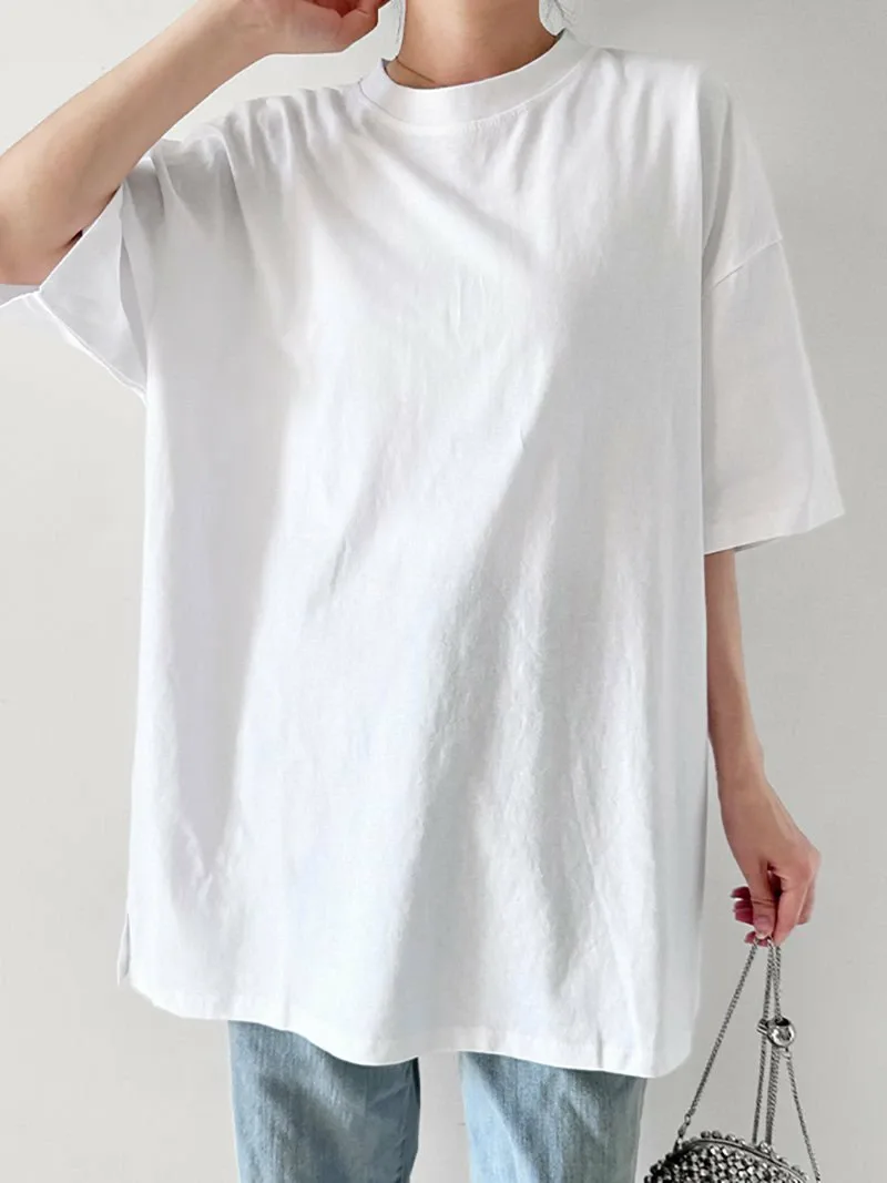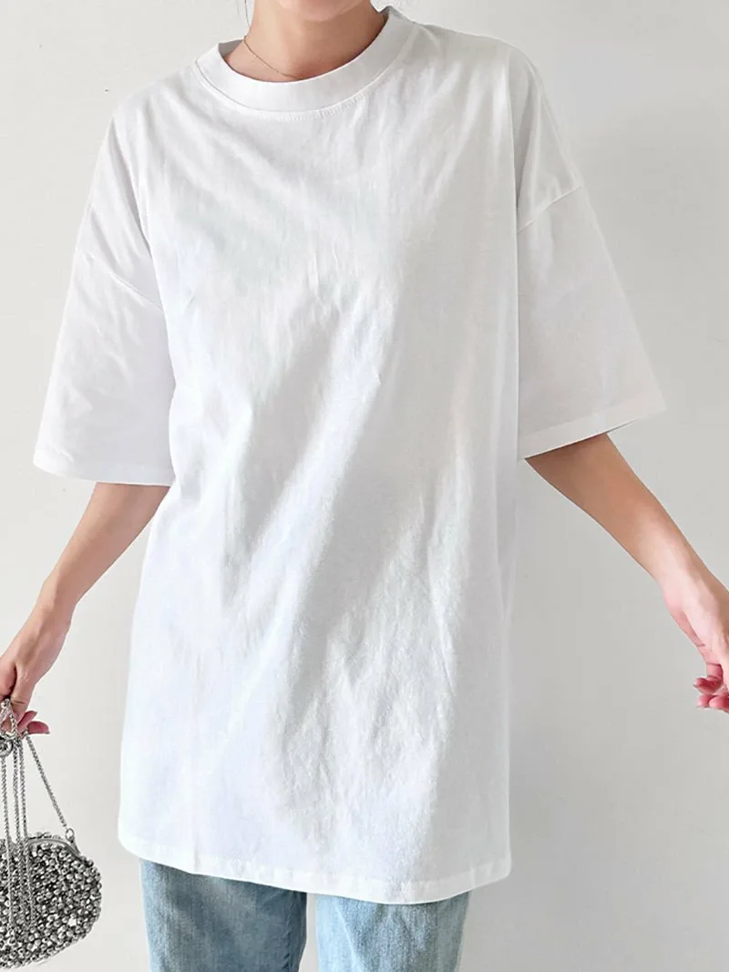 Свободный силуэт придает ему слегка объемный вид, а круглый вырез горловины – аккуратный и опрятный вид.