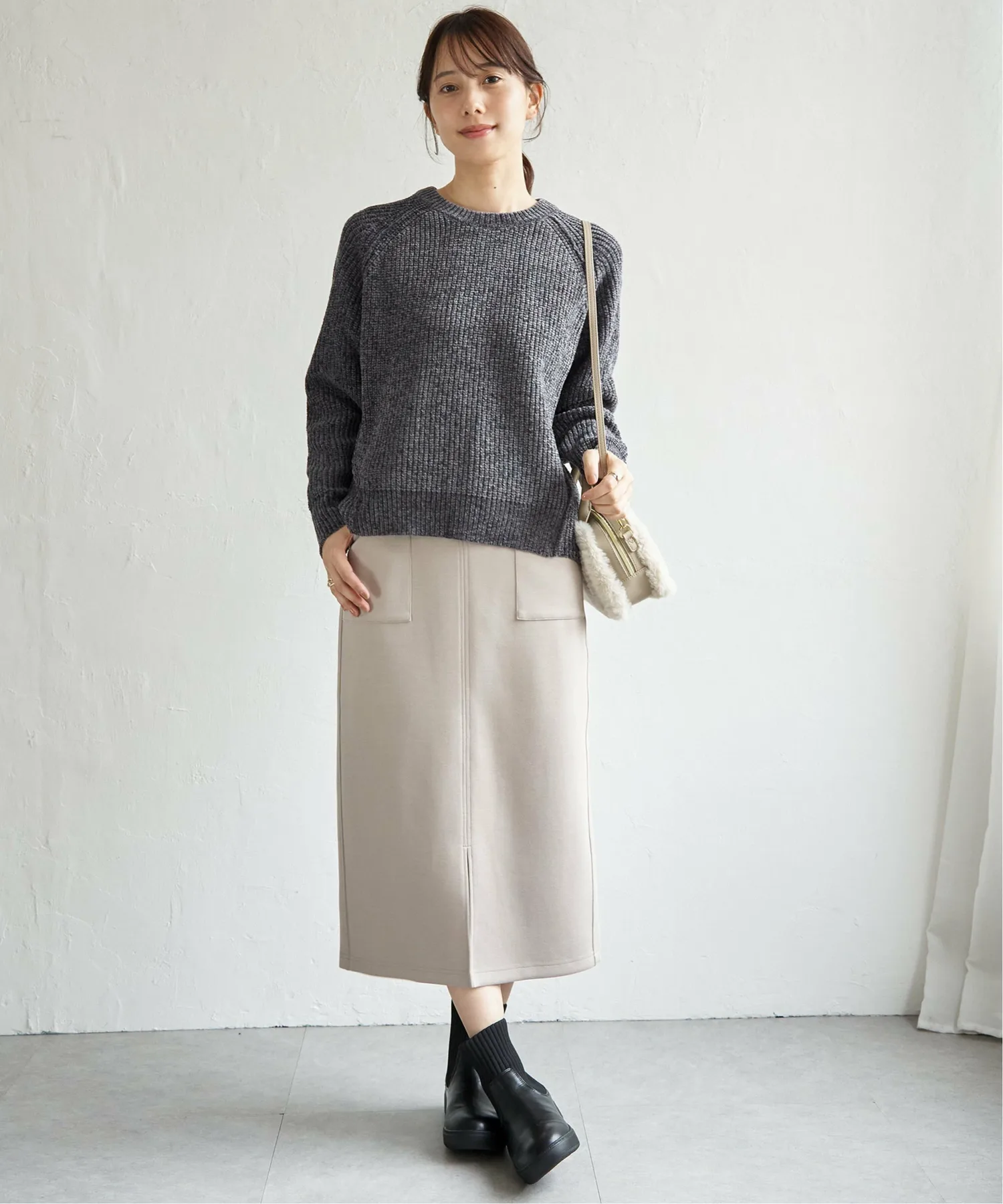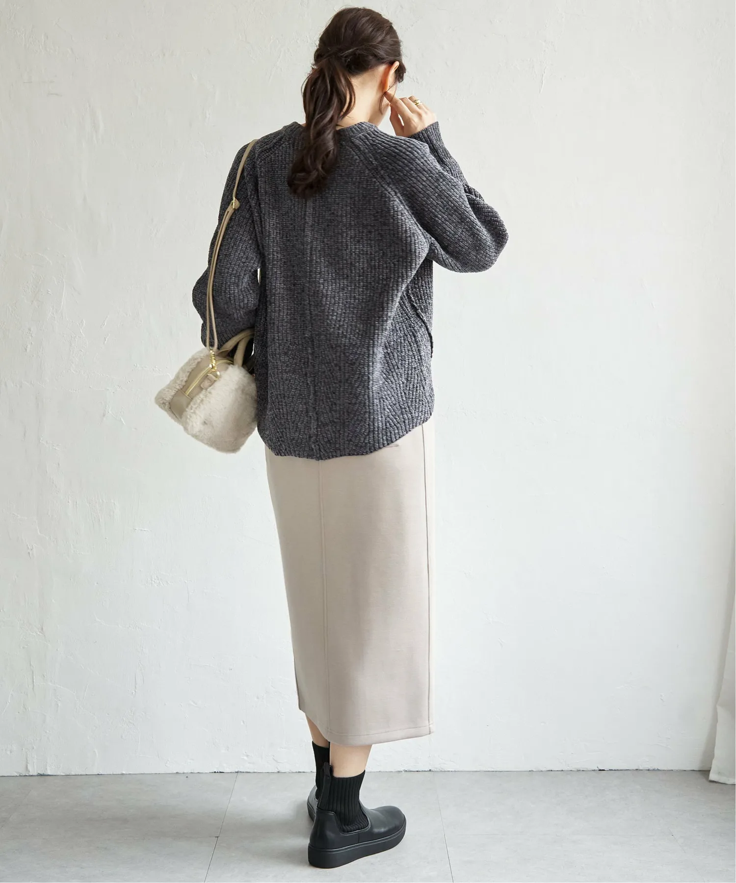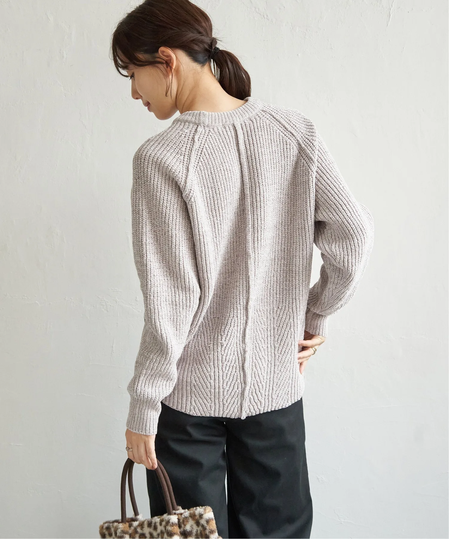 Вертикальные линии ребристой вязки создают аккуратный вид, а умеренно объемная текстура добавляет нотку гламура зимнему стилю.
