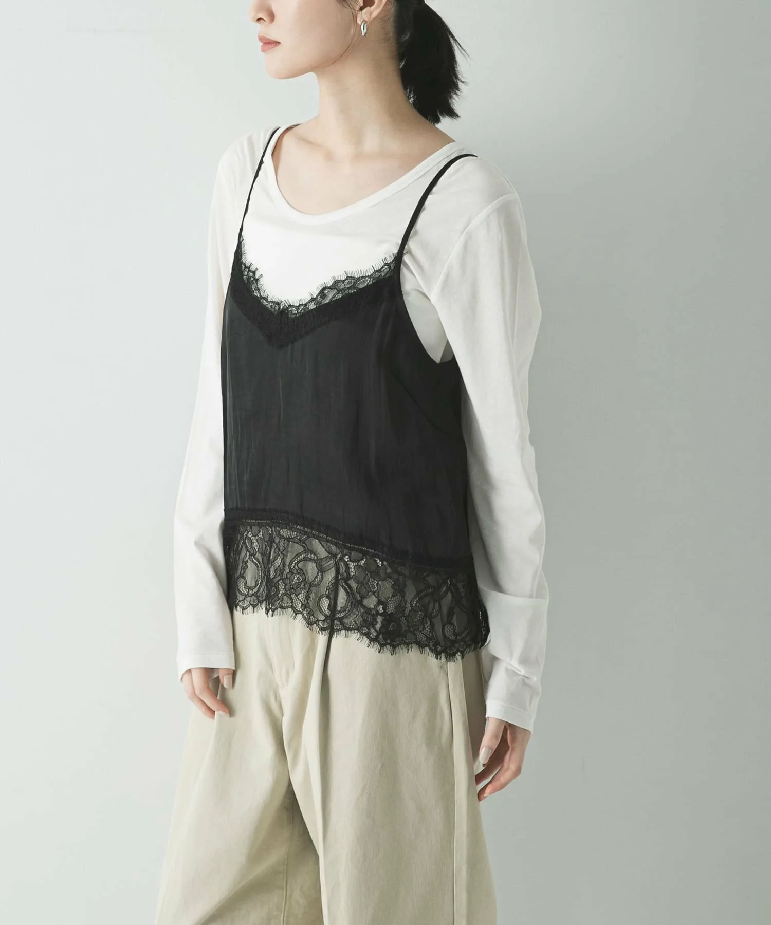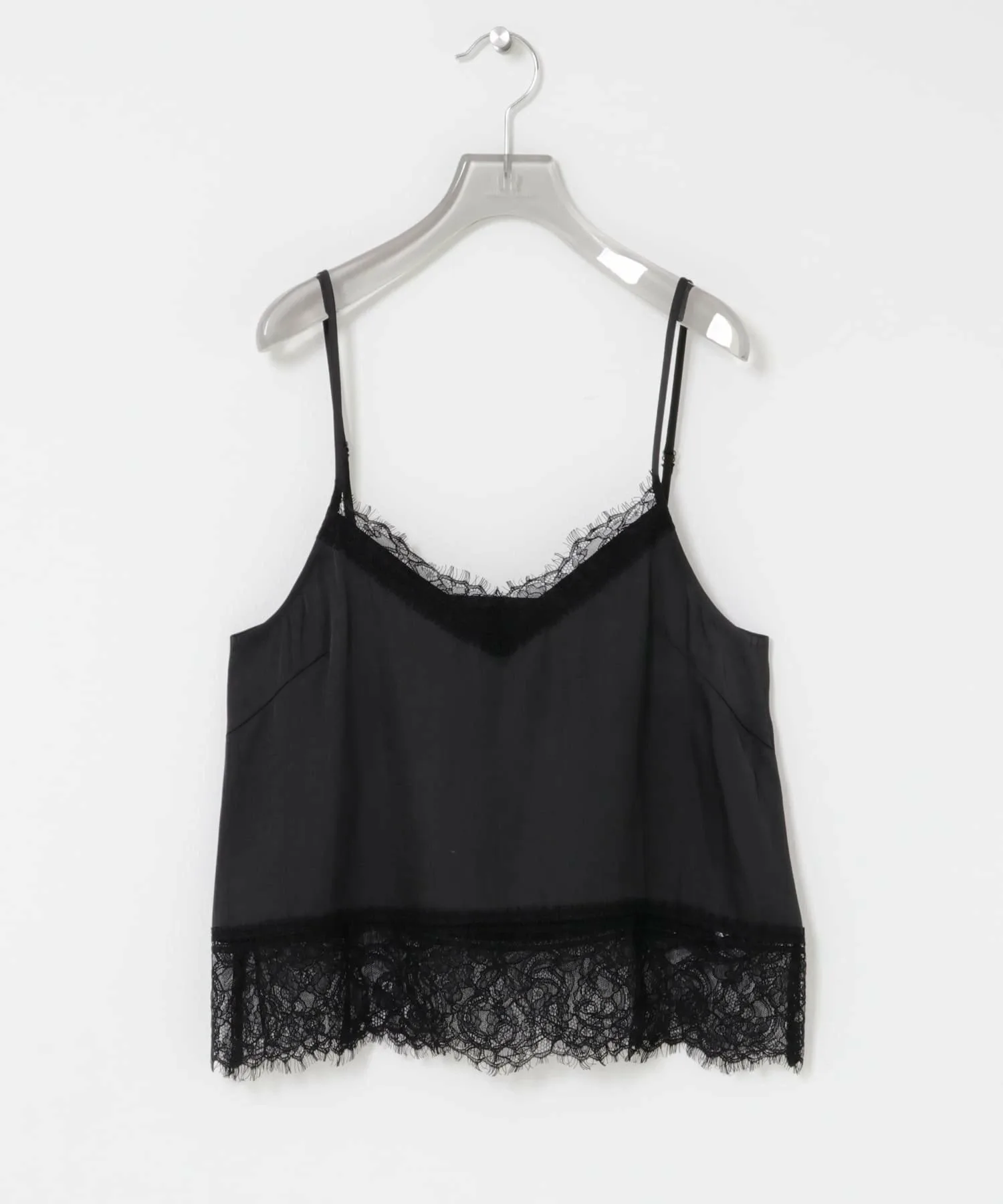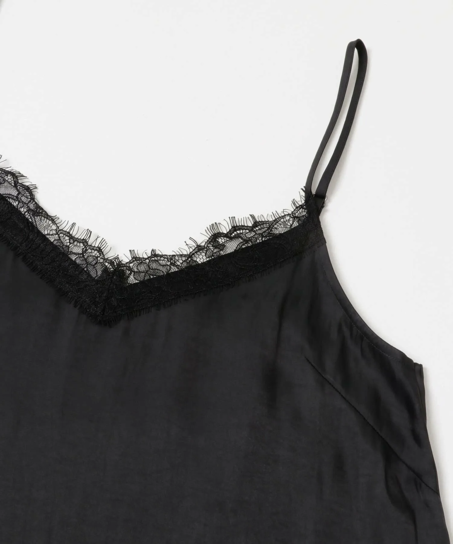 Эта атласная кружевная майка украшена привлекательным кружевом в винтажном стиле.