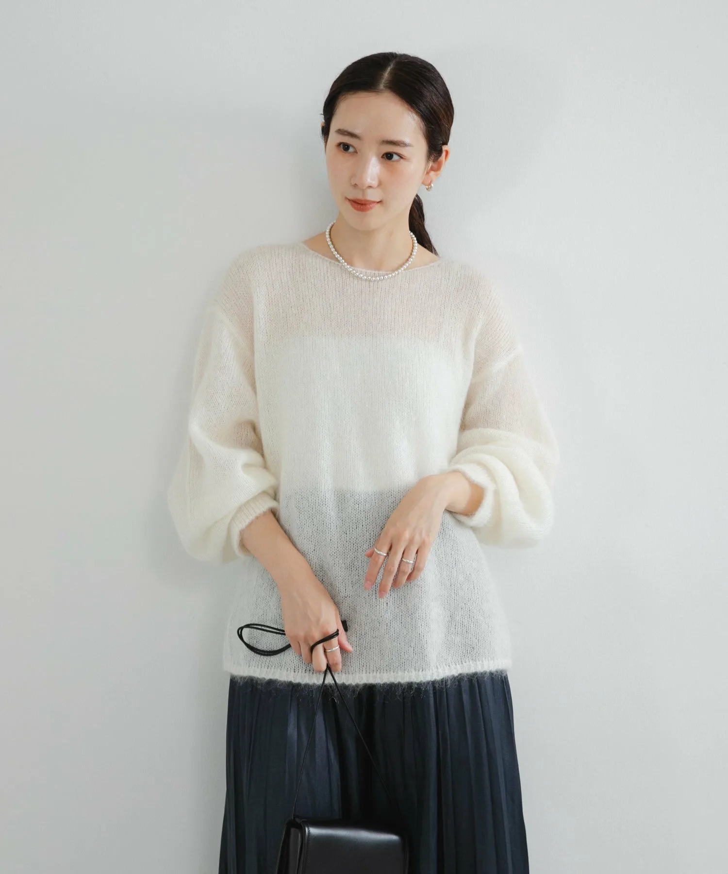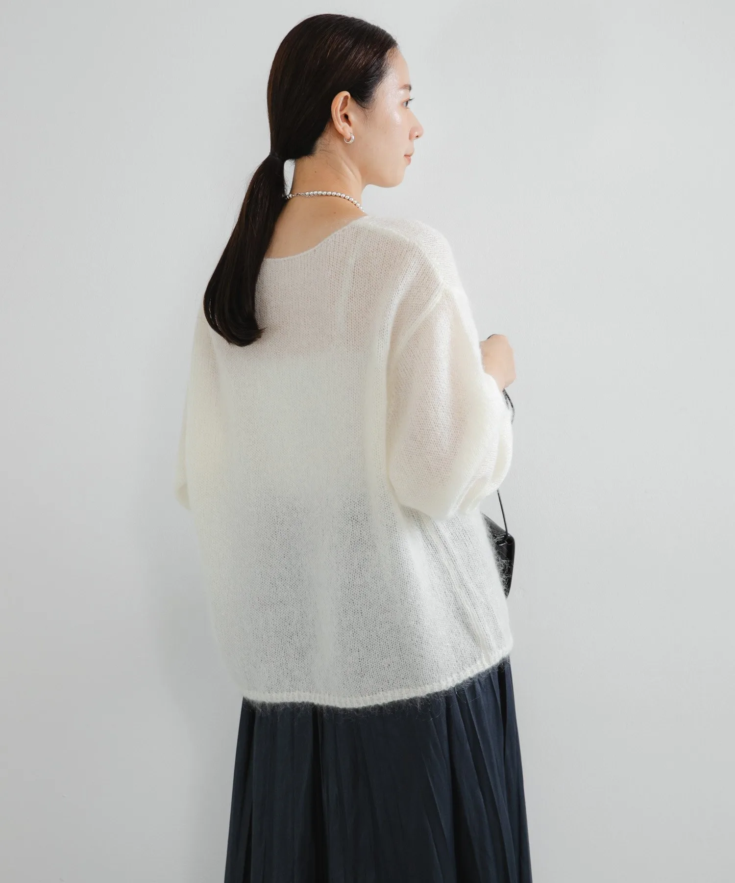 Теплая, ворсистая текстура дополнена легкой прозрачностью, что придает легкость любому наряду. Изготовленный из пряжи, популярной в прошлом году, в этом году манжеты обновлены и имеют ребристую отделку. Силуэт, заканчивающийся на рукавах, создает необходимый объем.