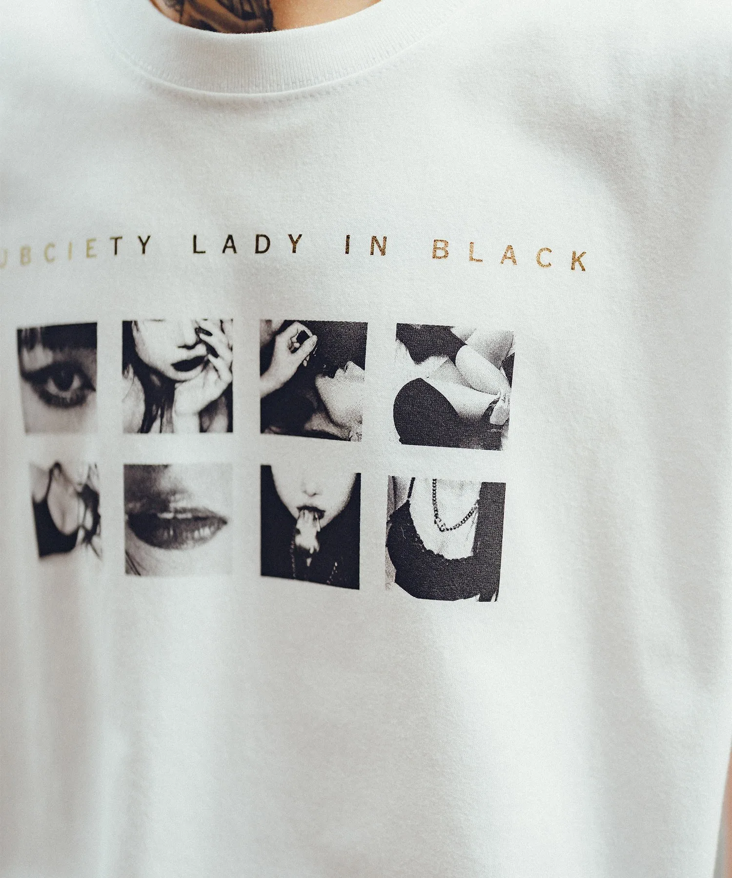 Логотип бренда и надпись Ladyinblack напечатаны золотой фольгой.