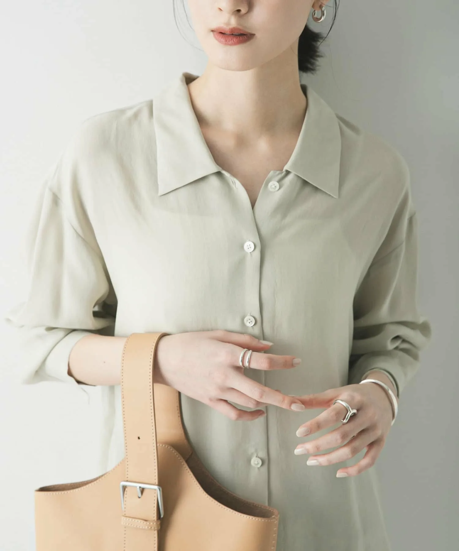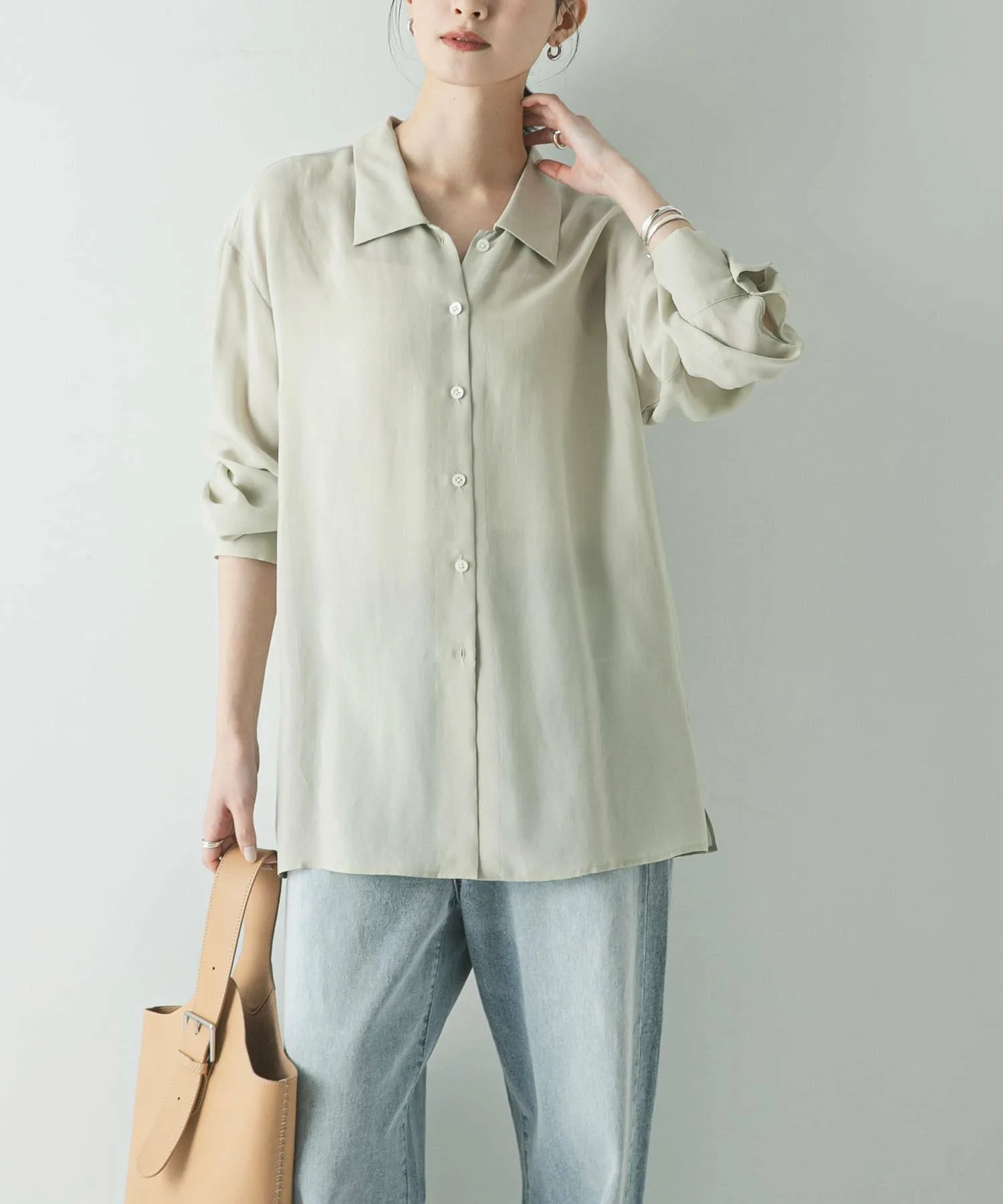 Эта рубашка из купры с элегантным кроем и легким блеском подчеркивает зрелую женственность.