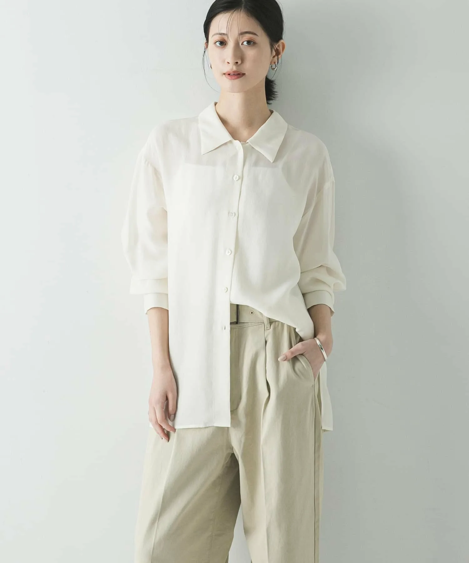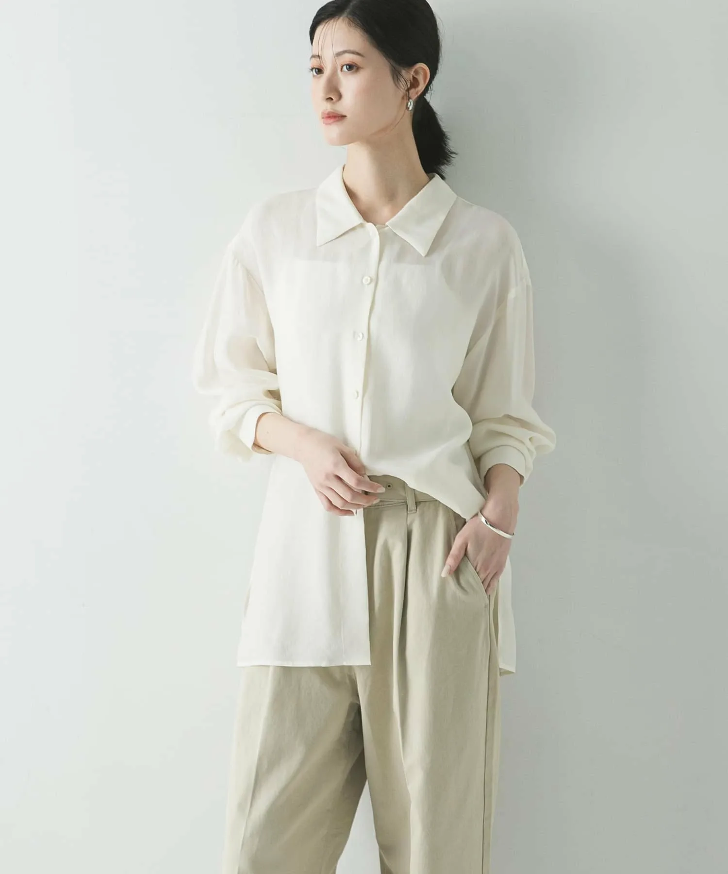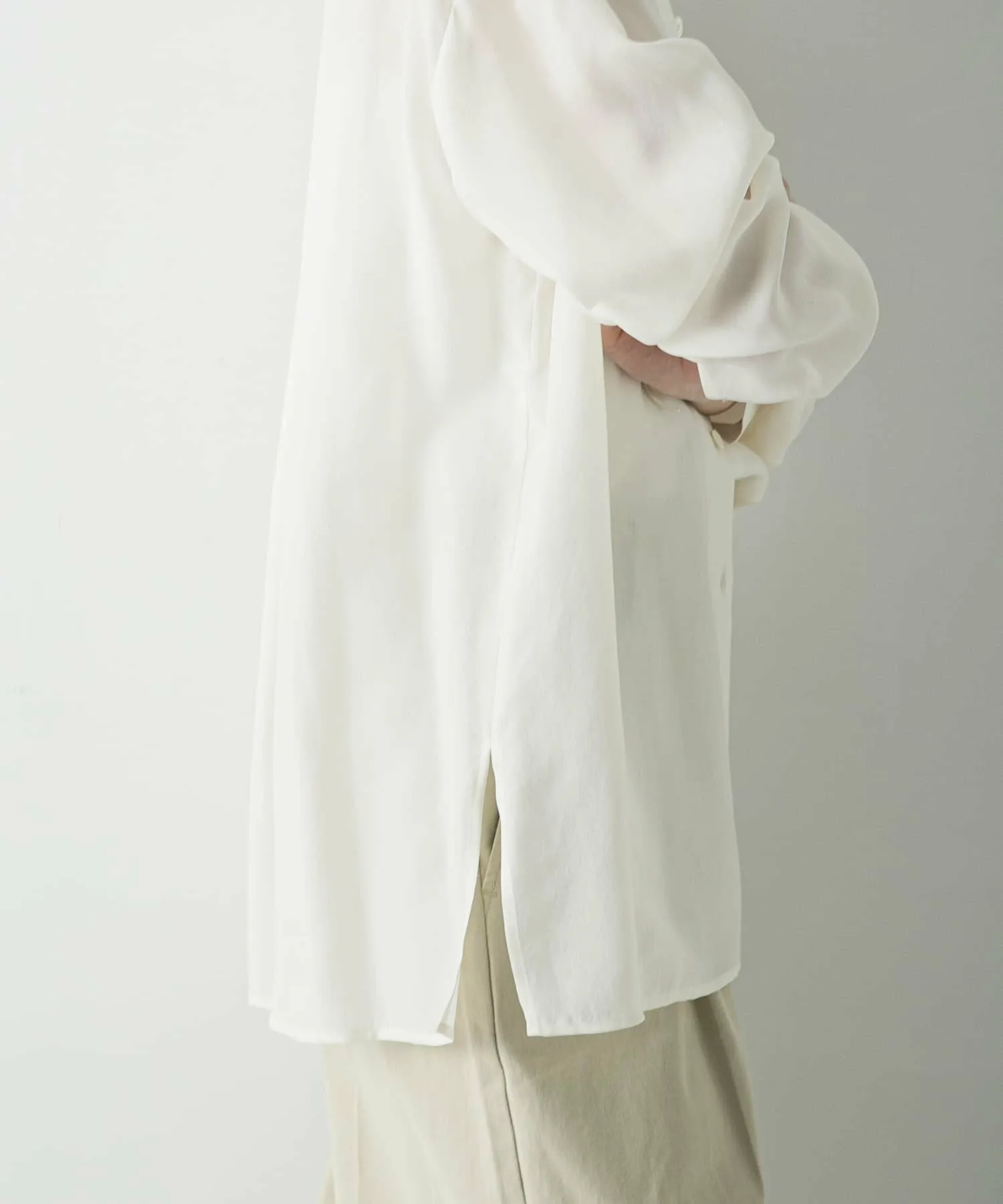 Свободный, прямой силуэт идеально сочетается с любыми брюками, а длина в самый раз. Воротник рубашки, глубокий спереди, и боковые разрезы создают естественный, расслабленный образ.