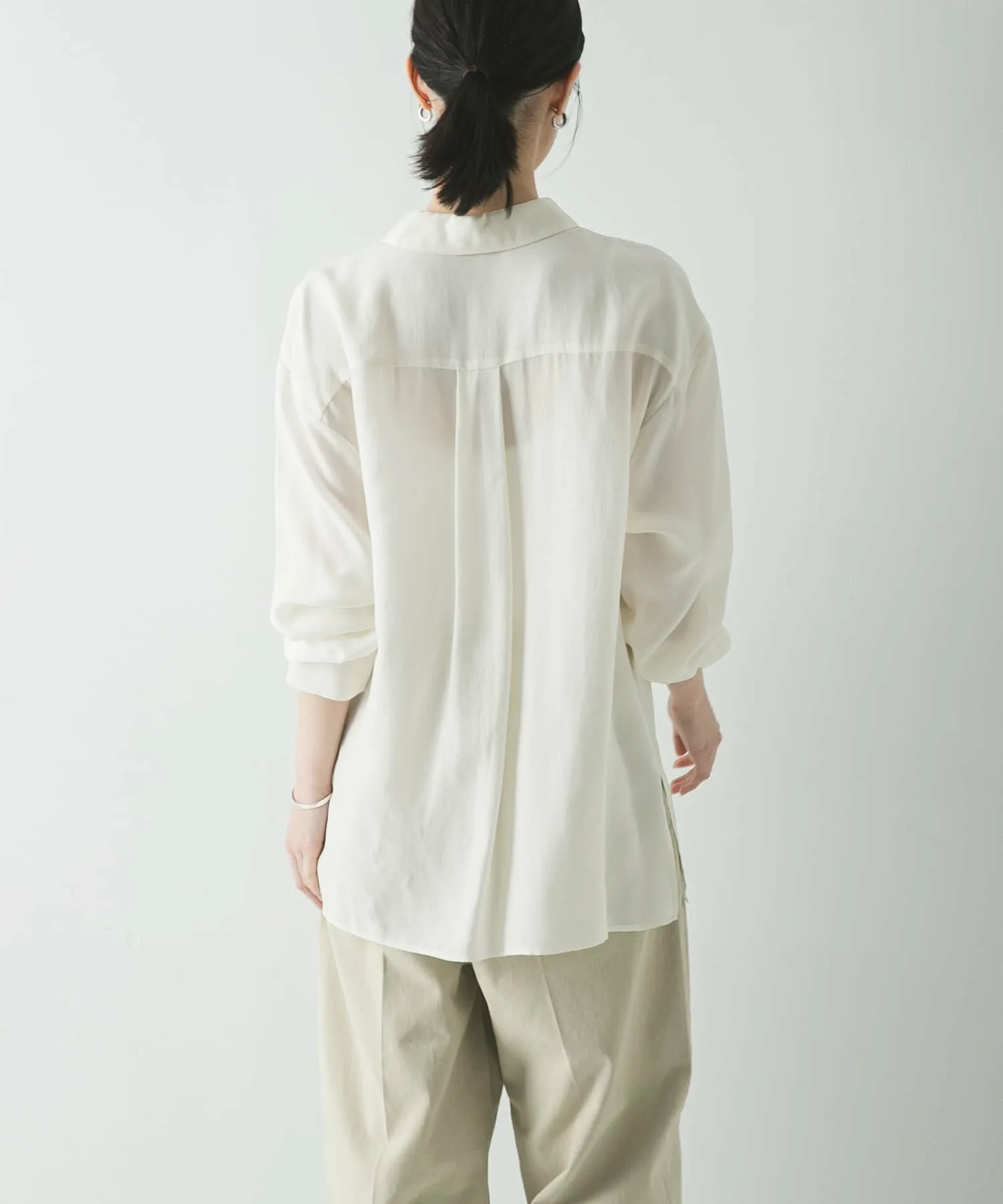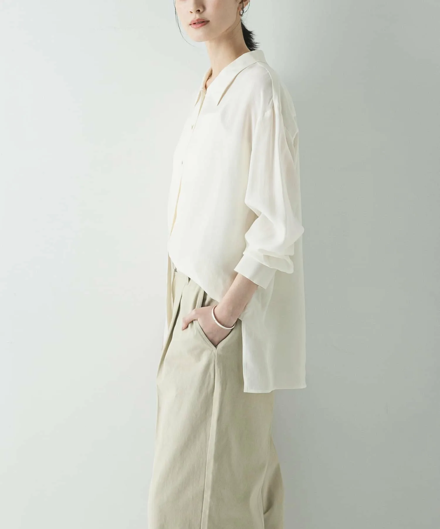 Эта рубашка из купры с элегантным кроем и легким блеском подчеркивает зрелую женственность.