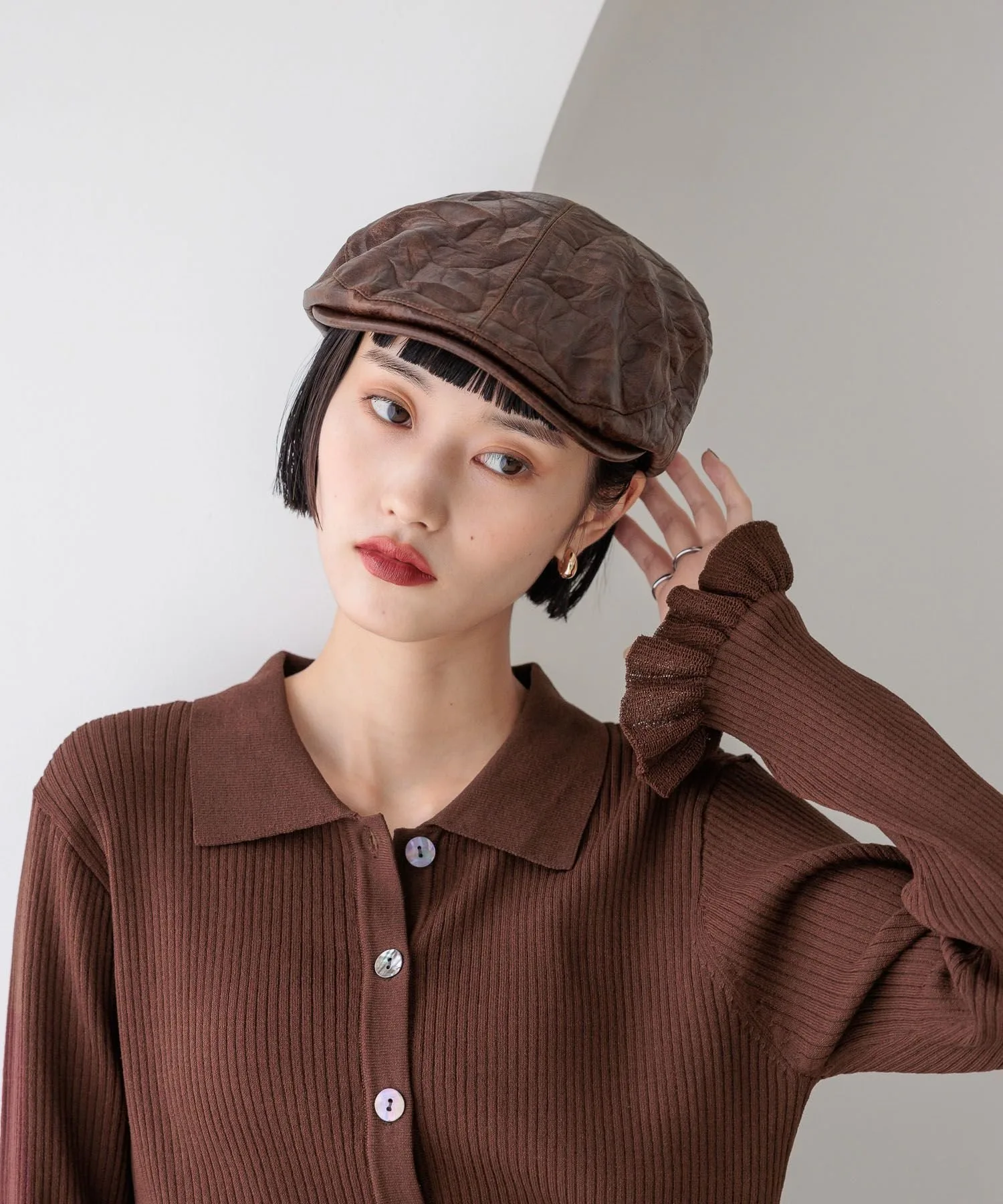 Серия охотничьих кепок из коричневой искусственной кожи с винтажной обработкой и простой черной искусственной кожи, которые легко сочетаются с любым стилем в этом сезоне.