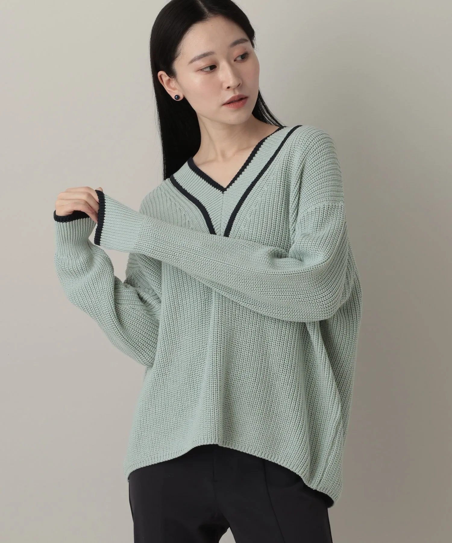 Рельефная вязка обеспечивает расслабленный, но не слишком резкий силуэт.