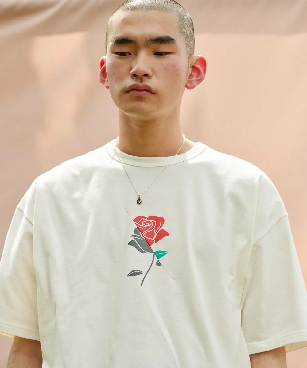 Это изделие, сшитое из отдельных элементов, имеет цветочный графический принт на лицевой стороне.
