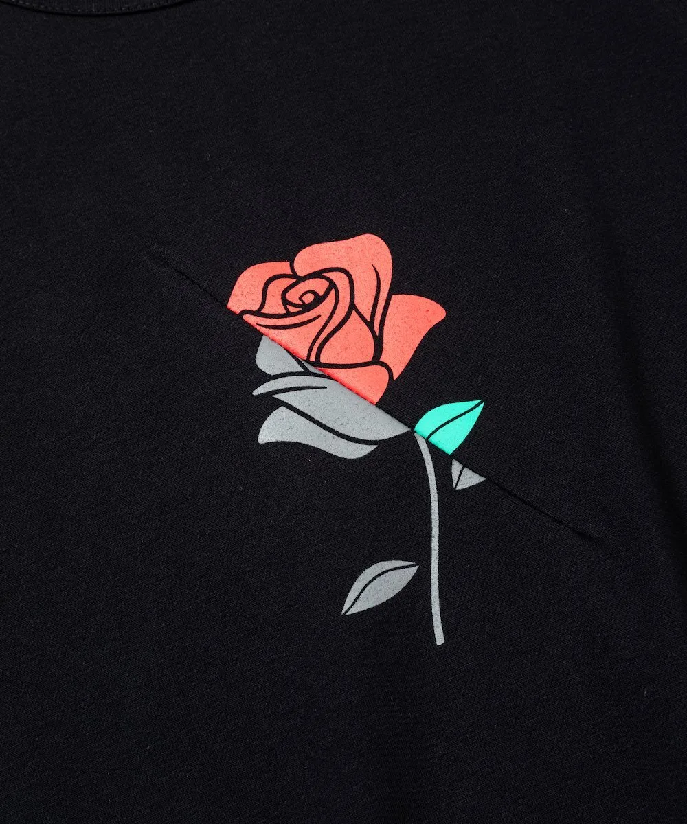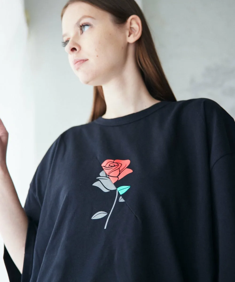 Это изделие, сшитое из отдельных элементов, имеет цветочный графический принт на лицевой стороне.