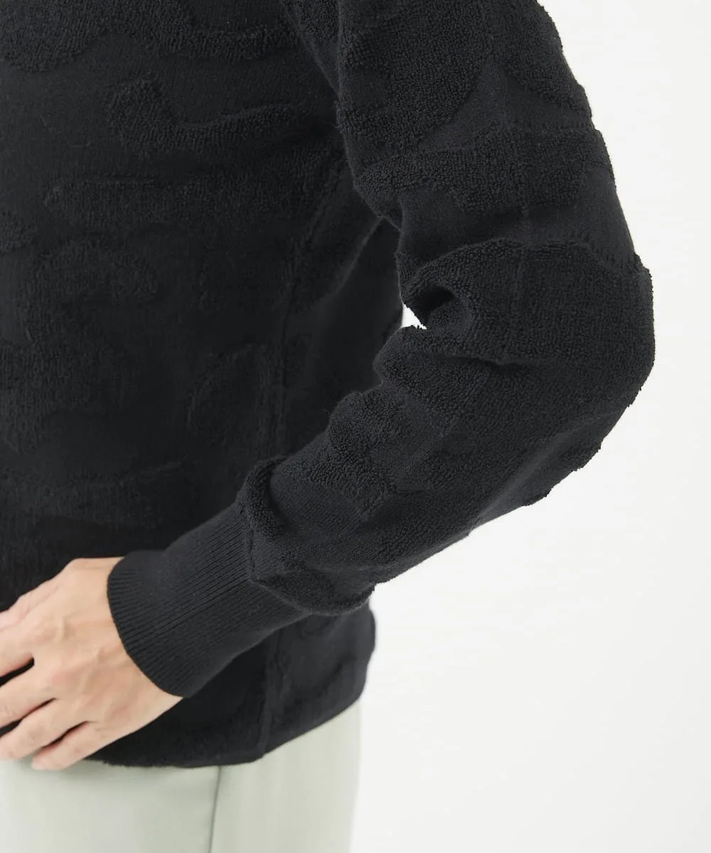 Этот элегантный пуловер украшен едва заметным камуфляжным узором того же цвета, что и жаккард. Его простой дизайн подчеркивает высокое качество материала. Это удобная вещь с оптимальной плотностью, которую можно носить как толстовку.