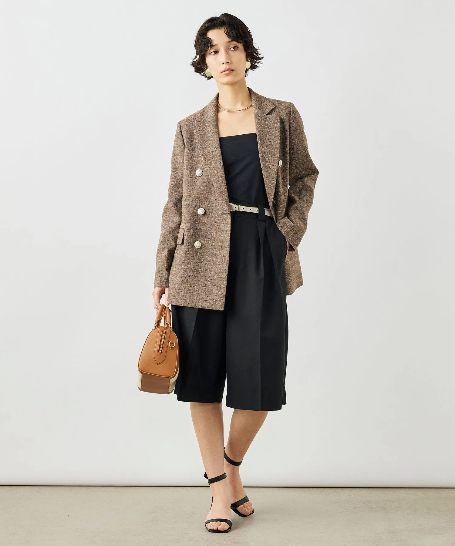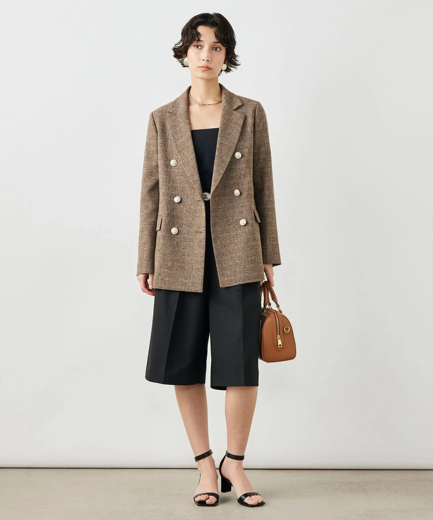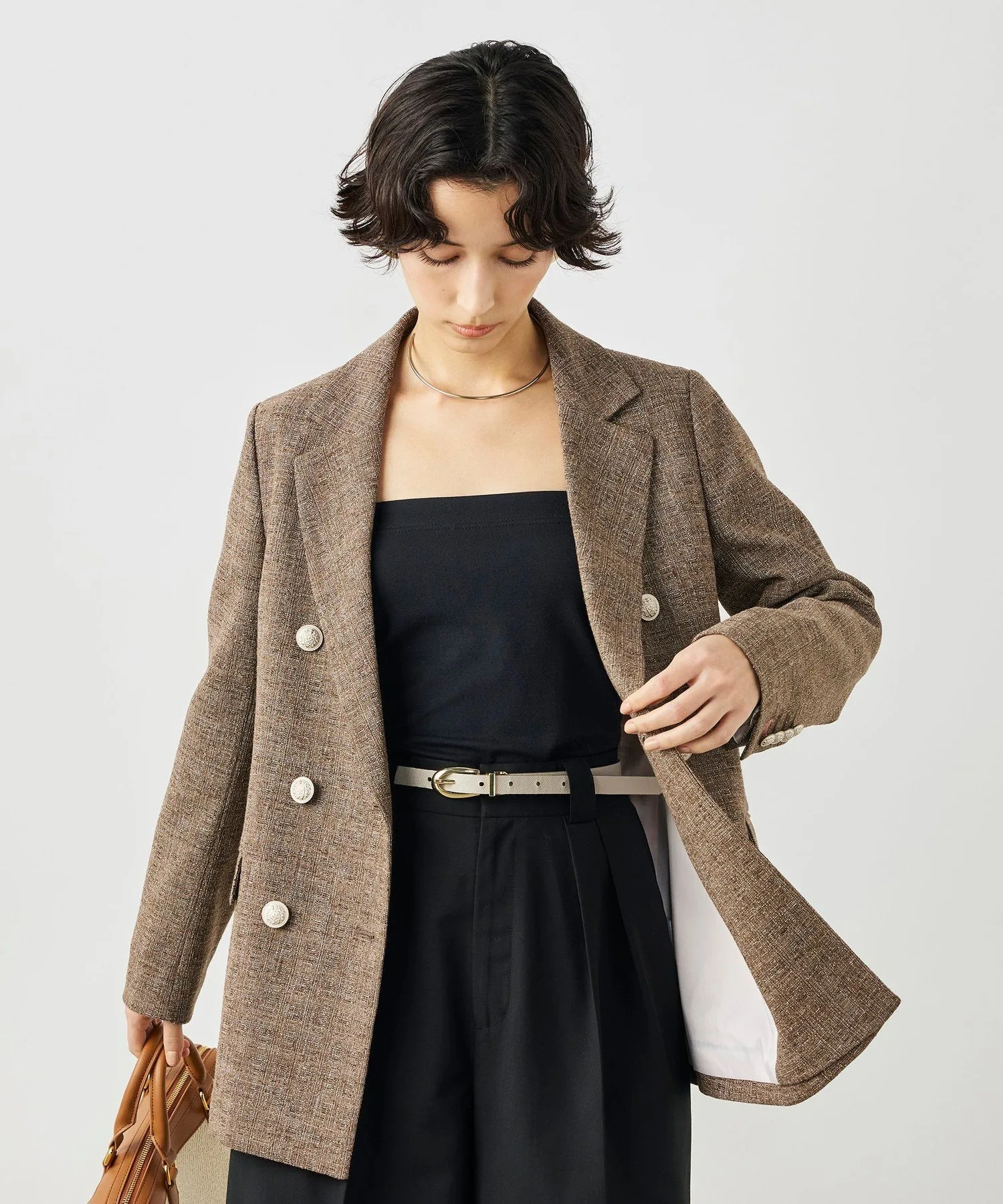 ※Цвета на фотографиях в магазине и на улице могут отличаться из-за условий освещения. Пожалуйста, ориентируйтесь на фотографии в студии для определения фактического цвета товара. *Мы стремимся отображать изображения товаров максимально точно, но в зависимости от настроек и характеристик вашего монитора могут быть небольшие различия в цвете по сравнению с реальным товаром. *Товар на изображении является образцом, поэтому характеристики, обработка и размер могут немного отличаться от реального товара. Коричневый: Рост 167 см, обхват груди 80, обхват талии 58, обхват бедер 87. Размер одежды: 38