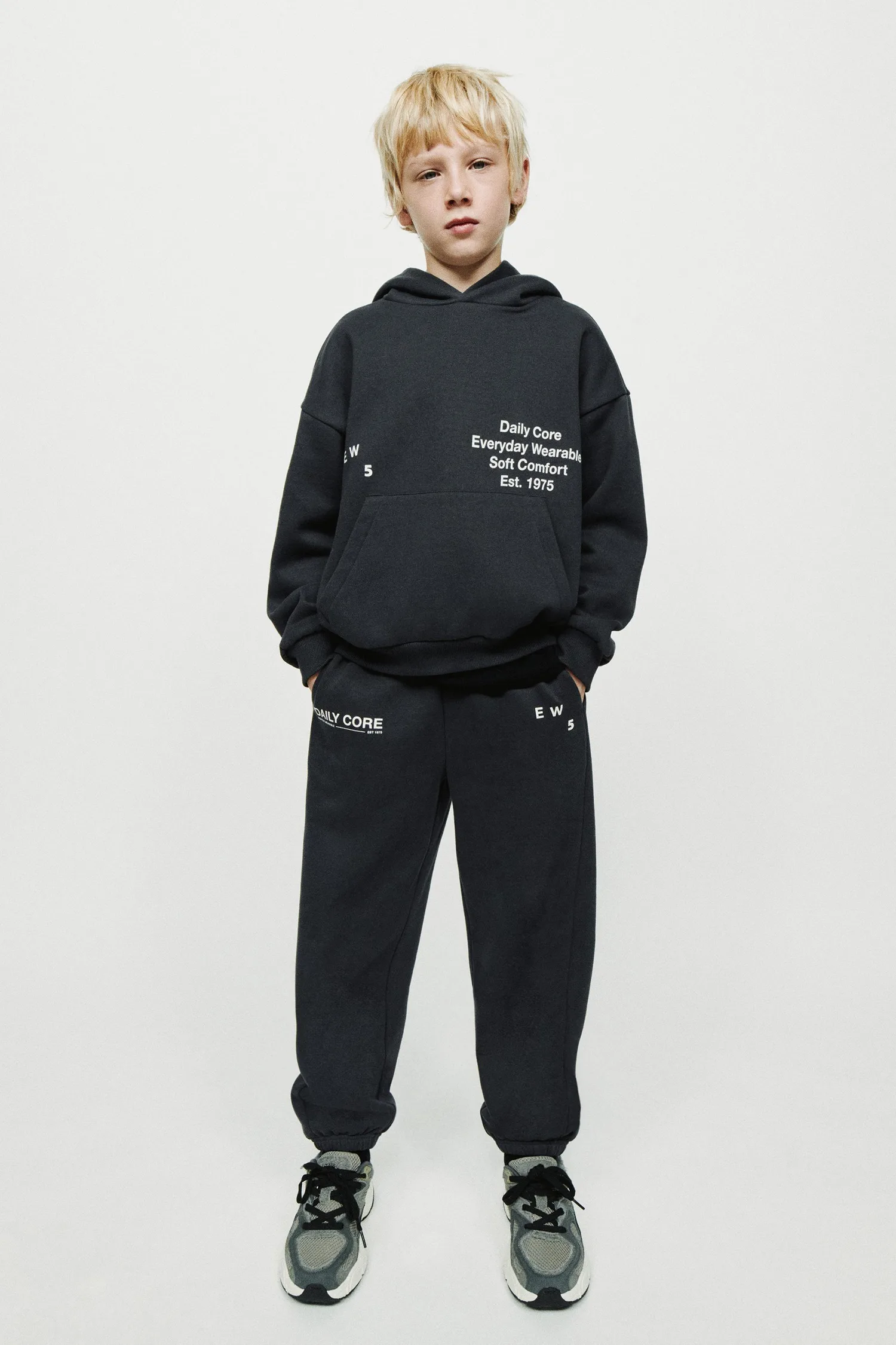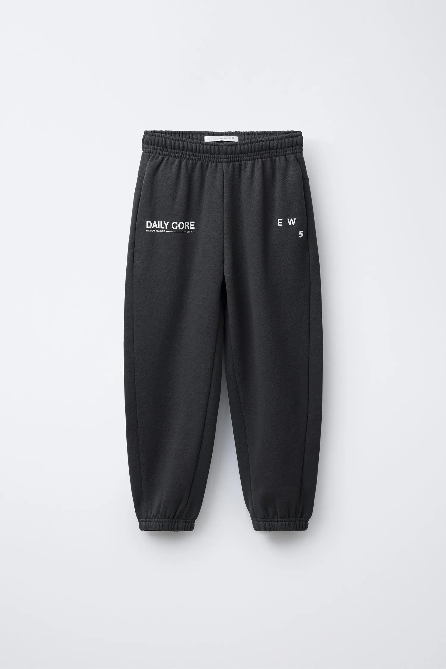 Спортивные брюки с эластичным поясом и регулируемыми внутренними шнурками. Передние карманы. Эластичные манжеты. Текстовый принт. Теплая и мягкая внутренняя сторона с начесом. Ткань: 80% хлопок.