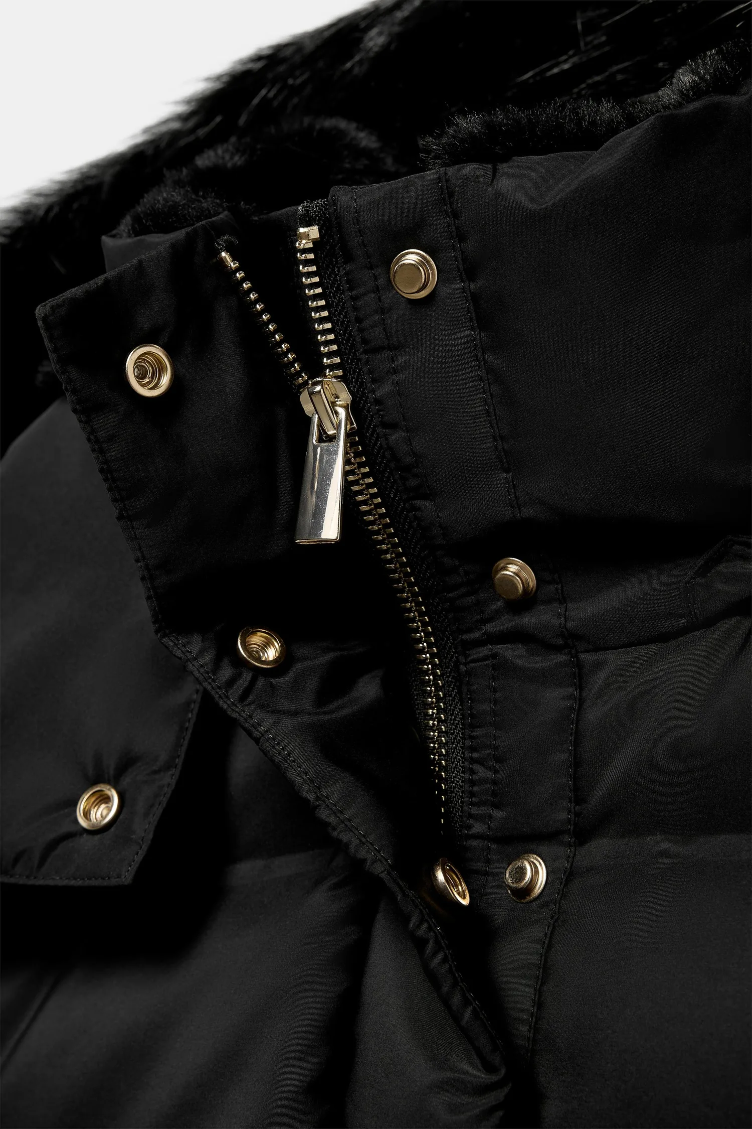 Высокий воротник с внутренней подкладкой и съемный капюшон из искусственного меха, регулируемый шнурками. Длинный рукав с внутренней манжетой. Передние карманы с флисовой подкладкой и застежкой на молнию. Эластичный низ. Застежка спереди на скрытую молнию и кнопки.