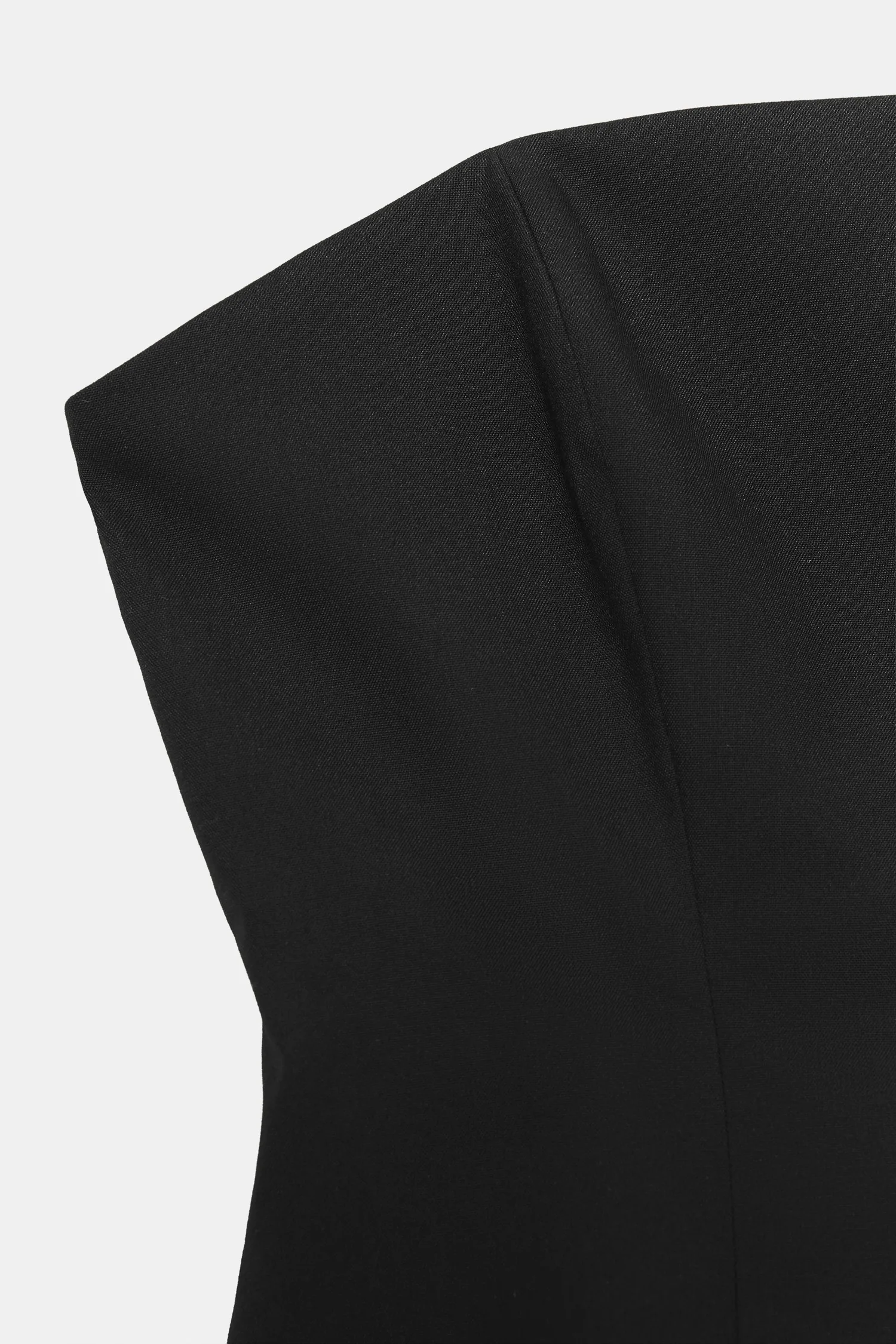 Приталенный топ с прямым вырезом и открытыми плечами. Внутренняя подкладка. Застегивается на потайную молнию в боковом шве.