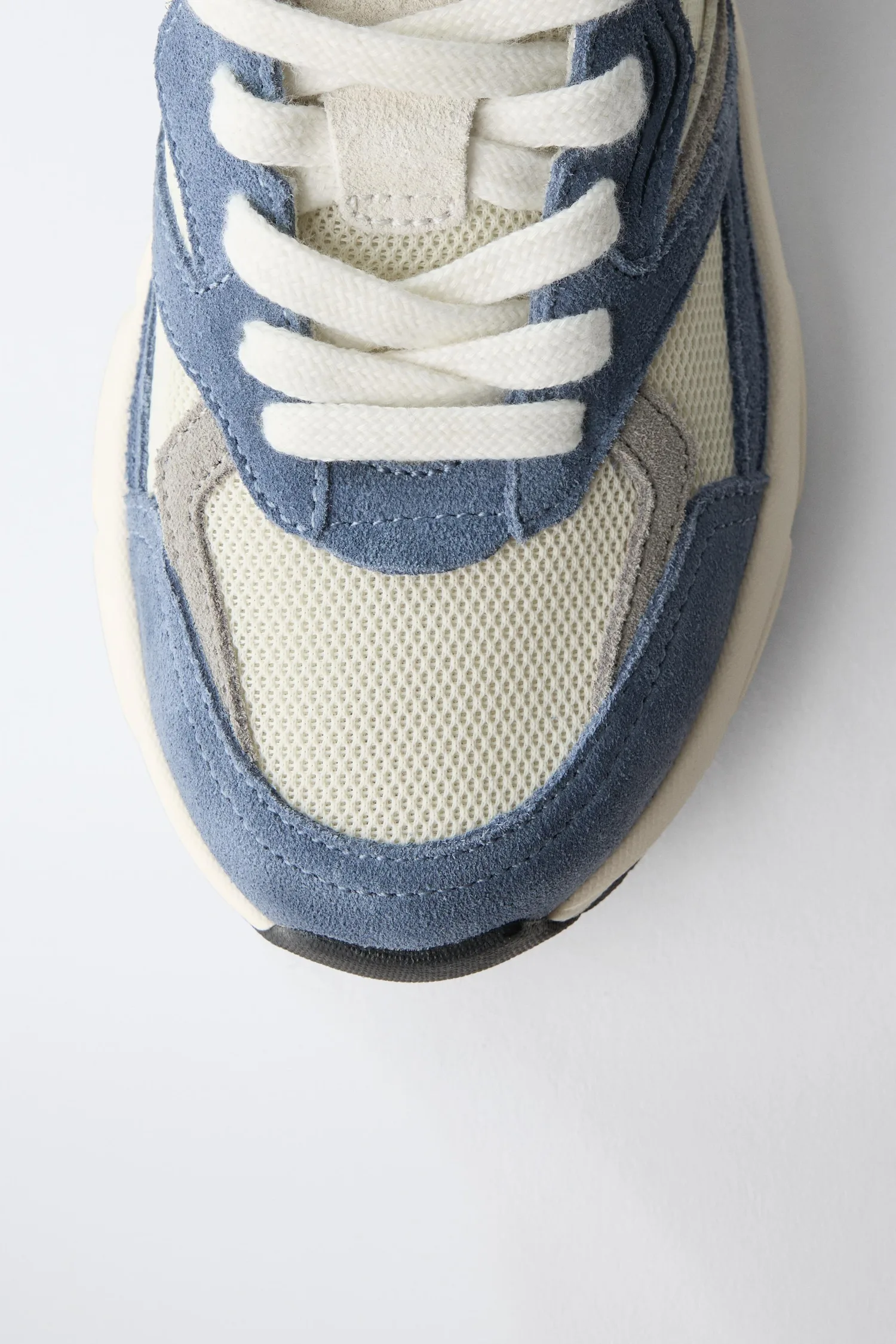 Комбинированные кроссовки из нескольких частей из кожи. Регулируемая шнуровка. Стелька OrthoLite. Резиновая подошва.