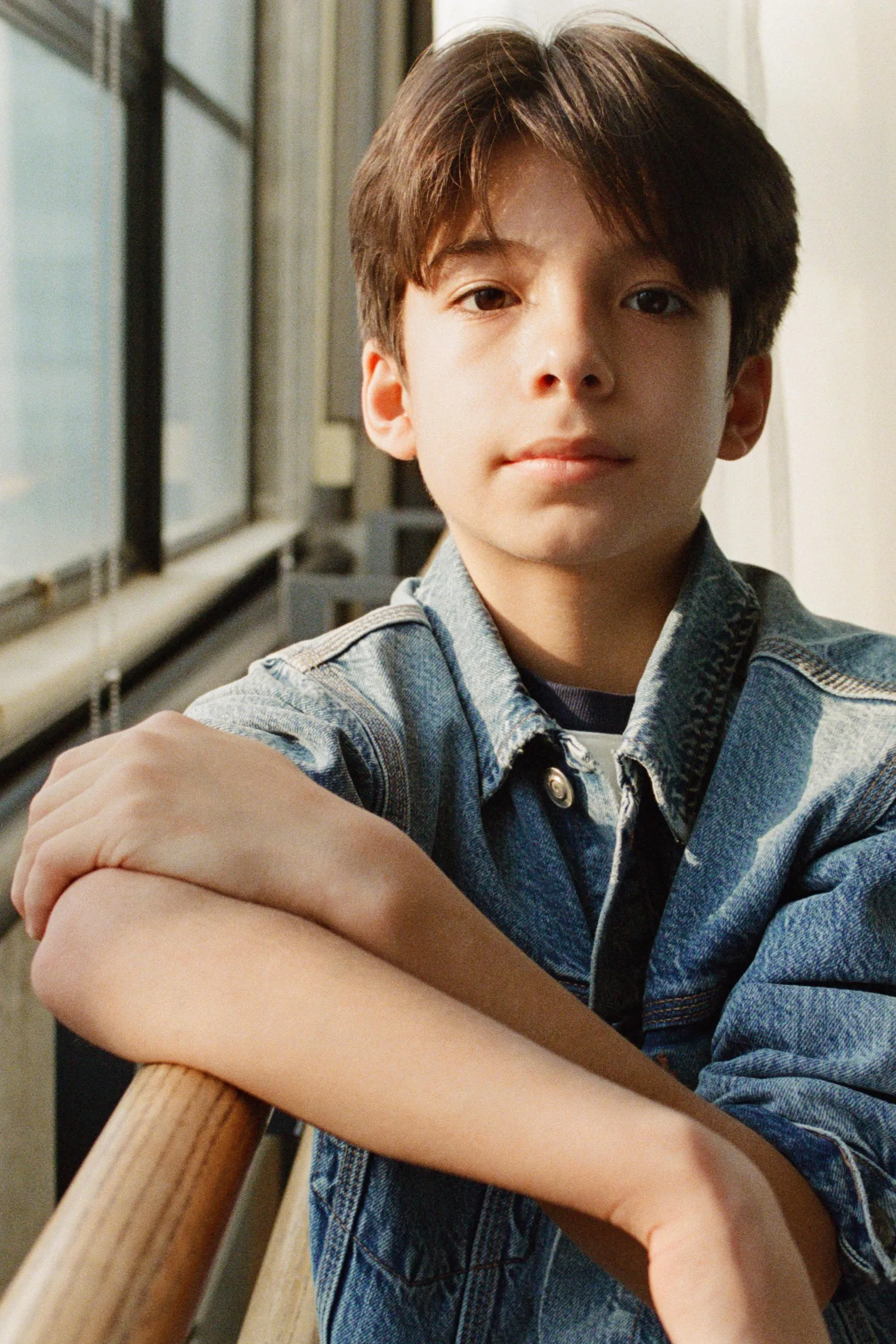 Джинсовая куртка с воротником рубашечного типа и длинными рукавами. Застежка на пуговицы спереди. Накладные карманы с клапанами и застежкой на пуговицы спереди. Прорезные карманы спереди.