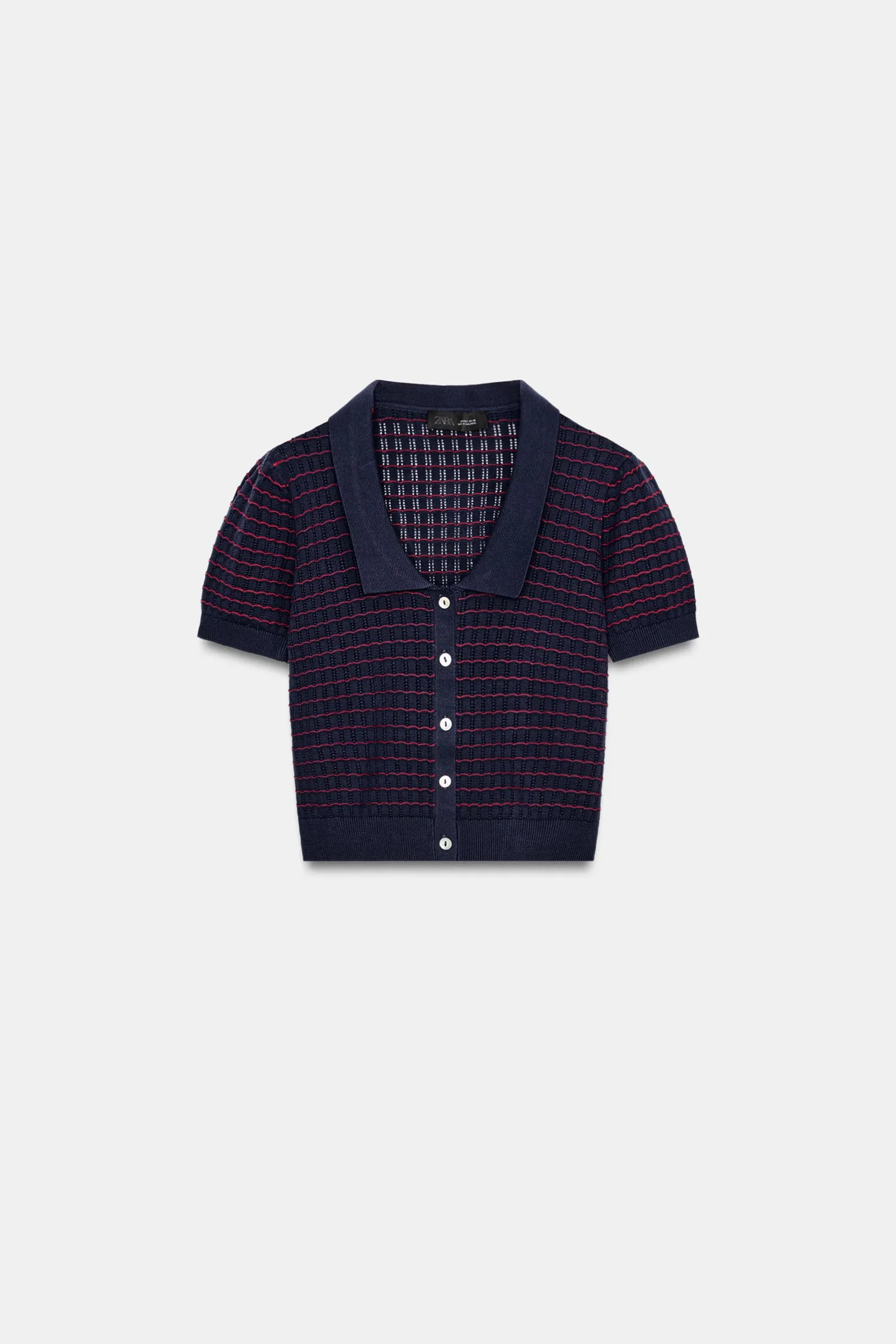 Топ с воротником "Питер Пэн" и короткими рукавами. Застегивается на пуговицы спереди.