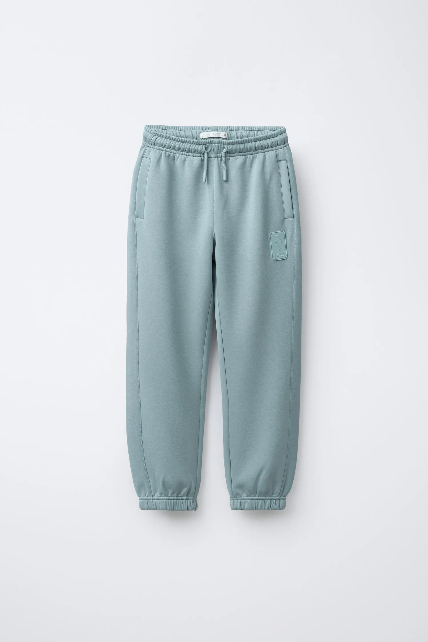 Спортивные брюки с эластичным поясом и регулируемыми шнурками спереди. С передними карманами. Резиновая нашивка на штанине. Манжеты внизу штанин.