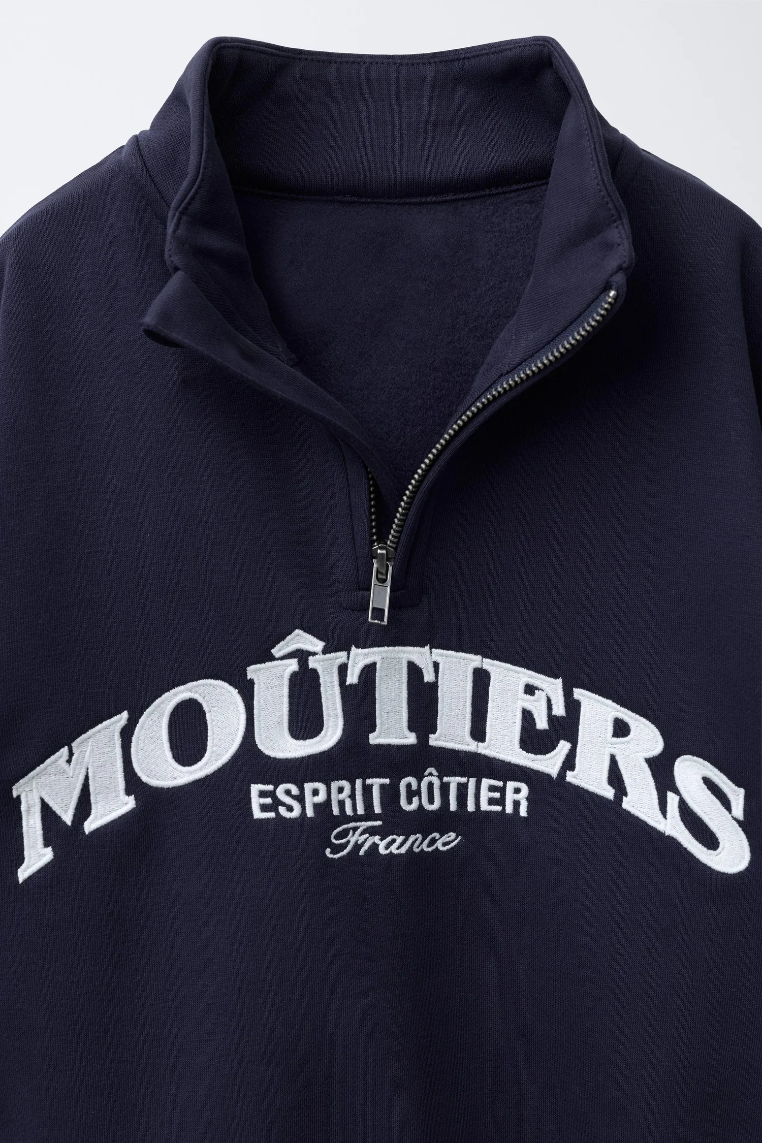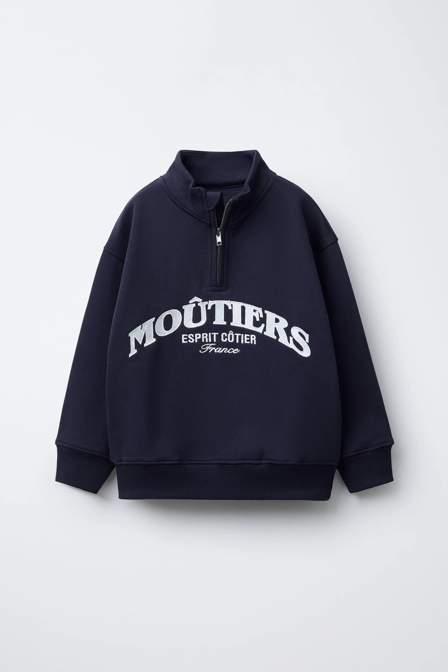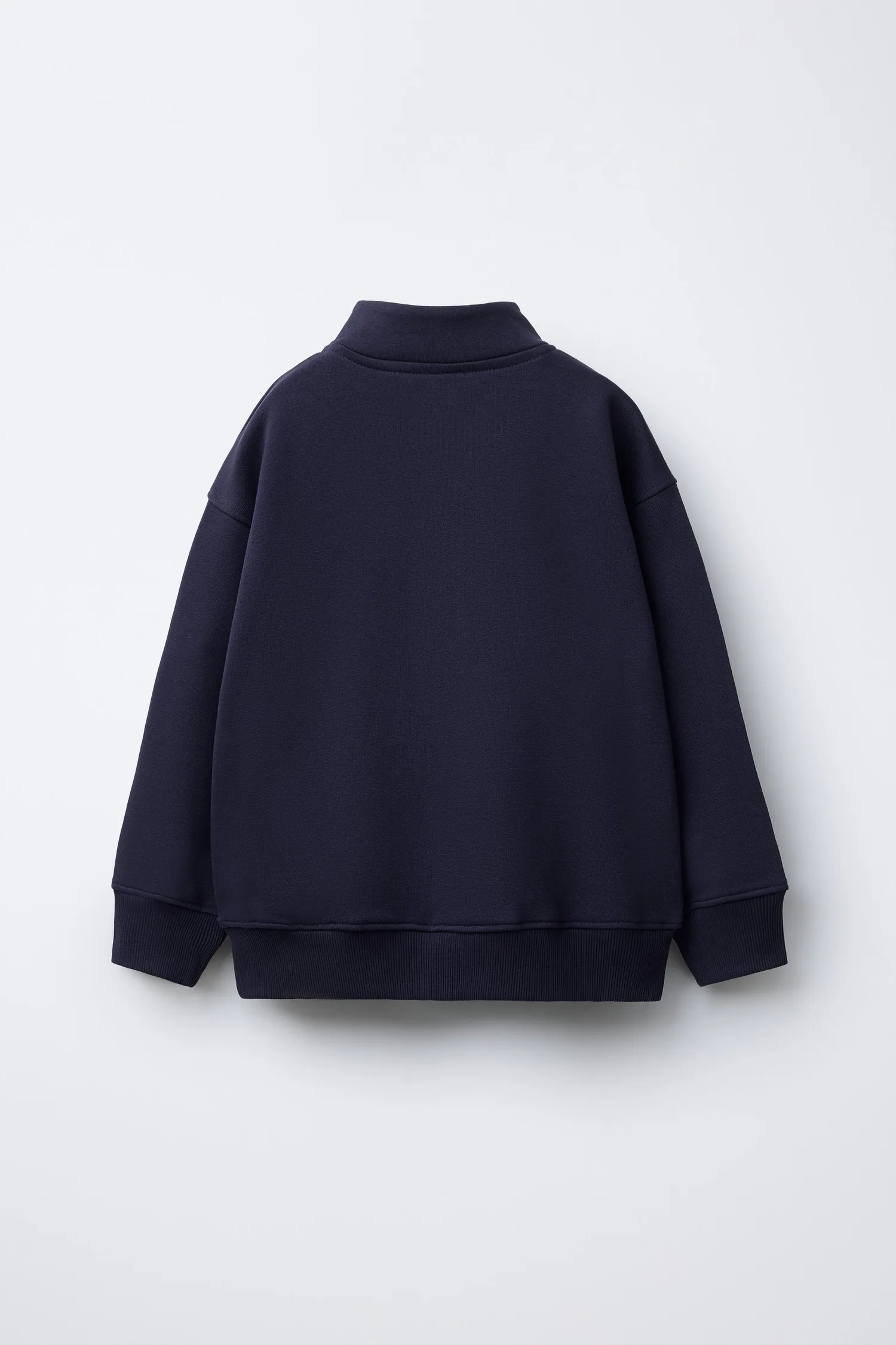 Свитшот с высоким воротником и длинными рукавами. Ребристая отделка. Застежка-молния на воротнике. Вышитая надпись на передней части. Мягкая ворсистая внутренняя сторона. 72% хлопок.