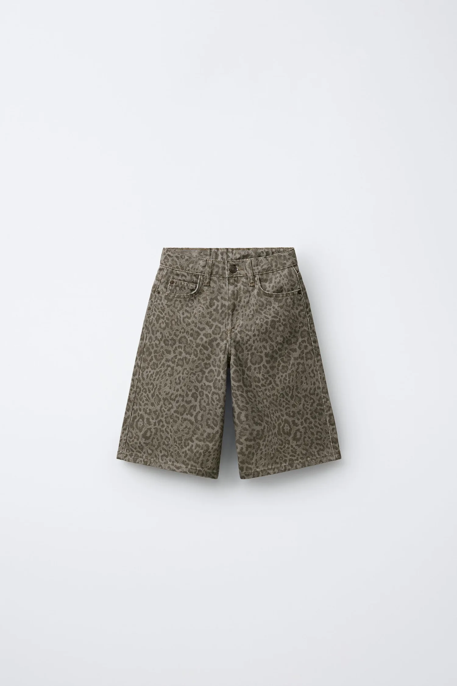 Джинсовые шорты-бермуды с регулируемым внутренним поясом и застежкой на пуговицы спереди. Имеют передние карманы и накладные карманы сзади. Анималистический принт.