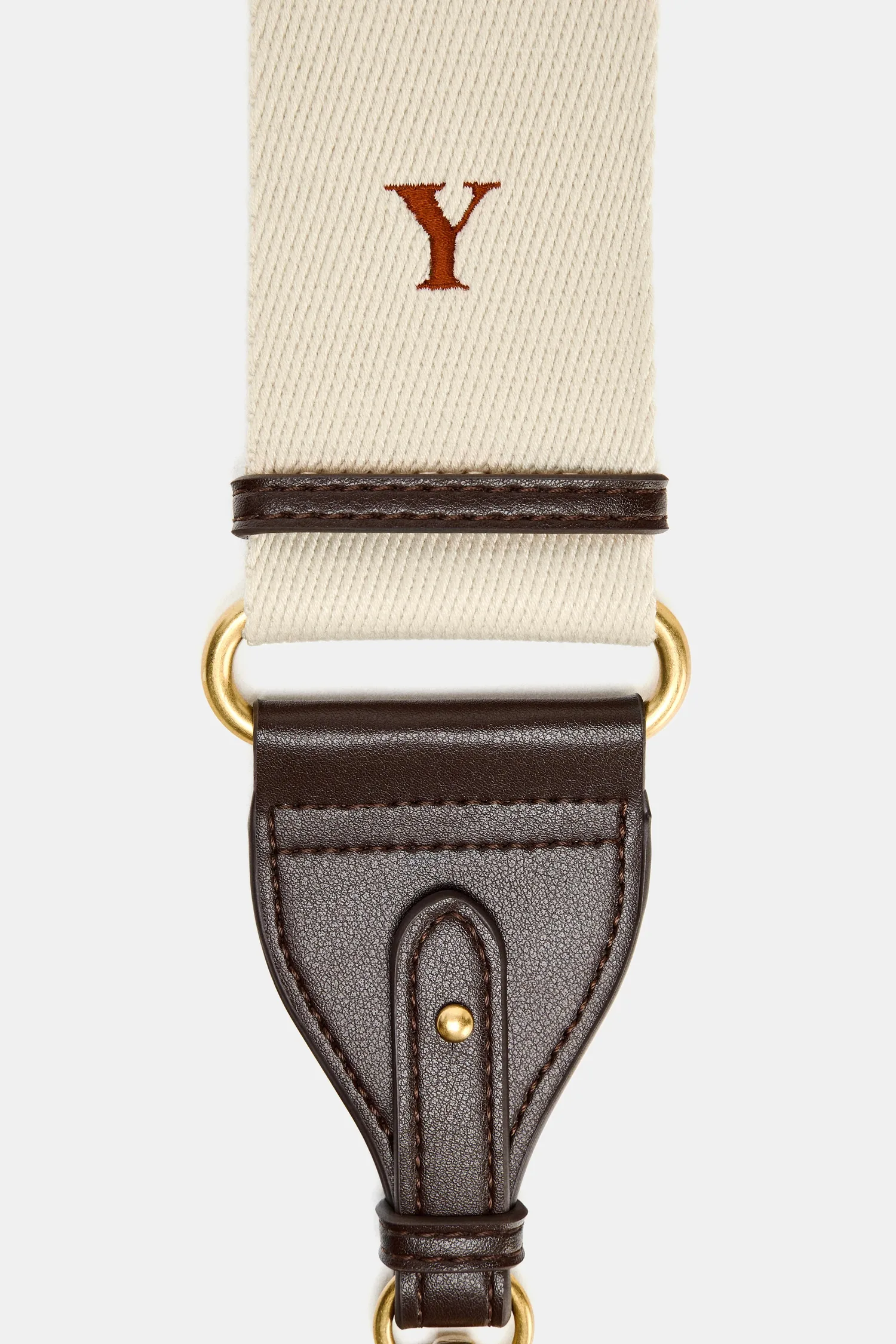 Широкий тканевый плечевой ремень. Регулируется с помощью металлического ползунка. Застежка-клипса. Концы выполнены из комбинации материалов.