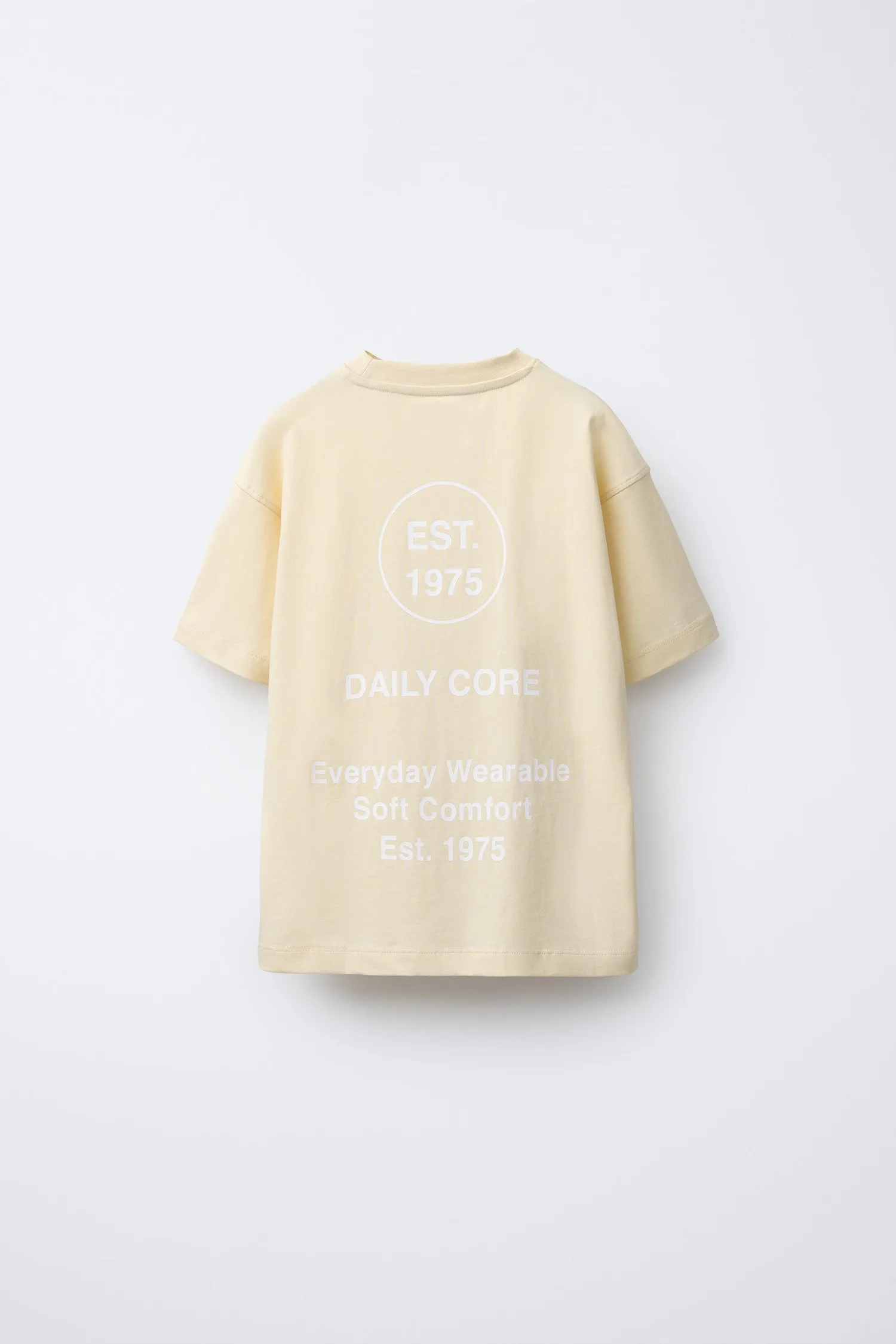 Футболка с круглым вырезом и короткими рукавами. Текст напечатан спереди и сзади.