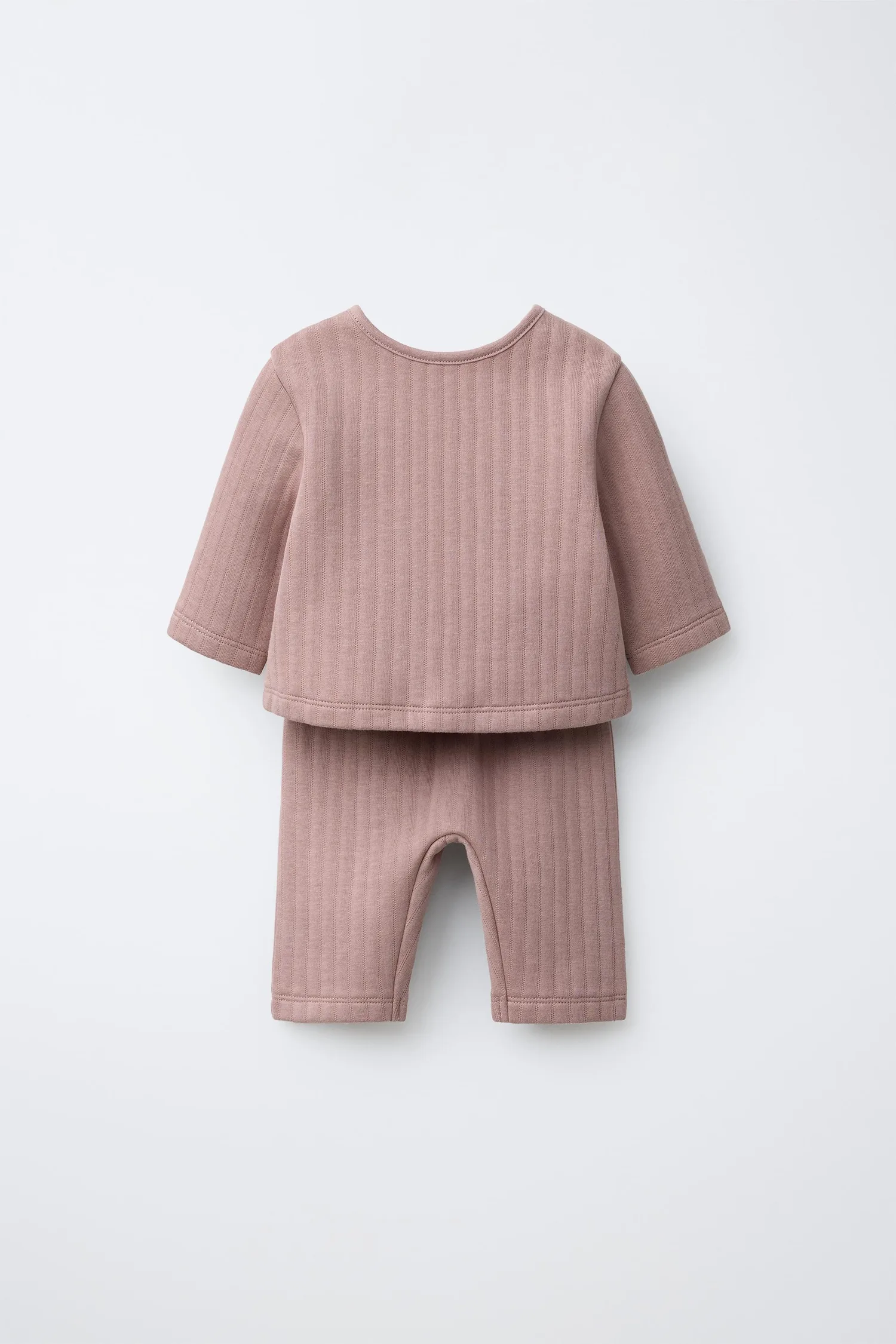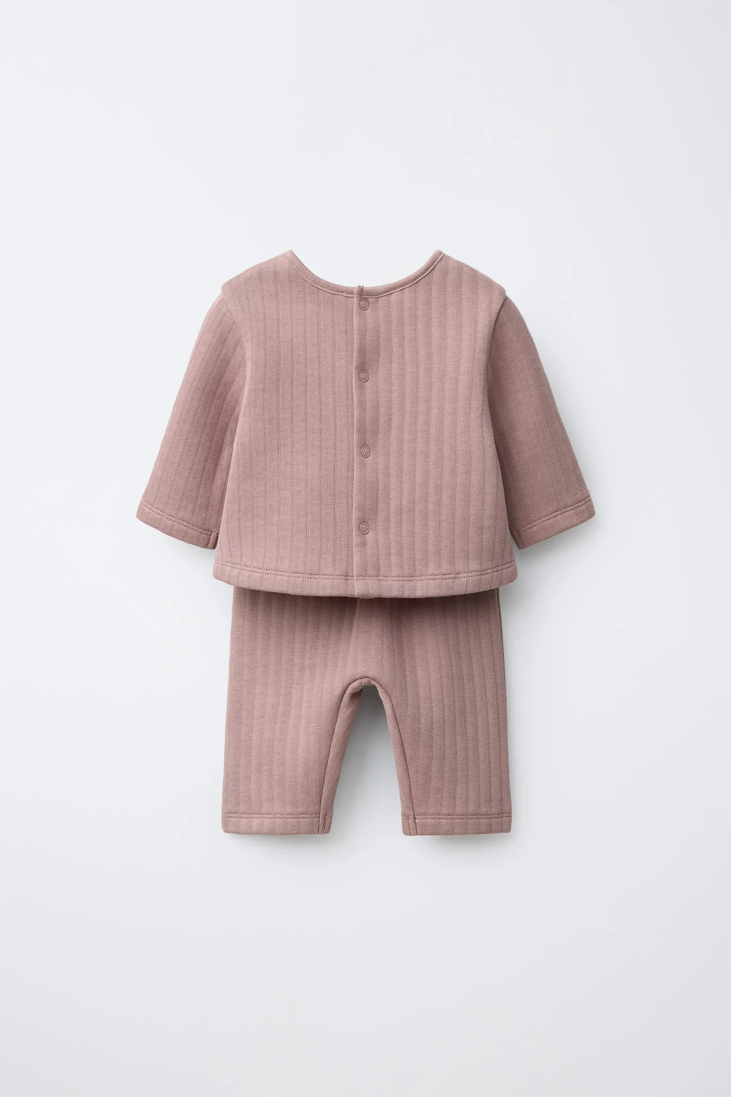 Комплект из двух предметов. Трикотажный джемпер-жакет 2-в-1 с круглым вырезом и длинными рукавами. Застежка на кнопки. Брюки с эластичным поясом.