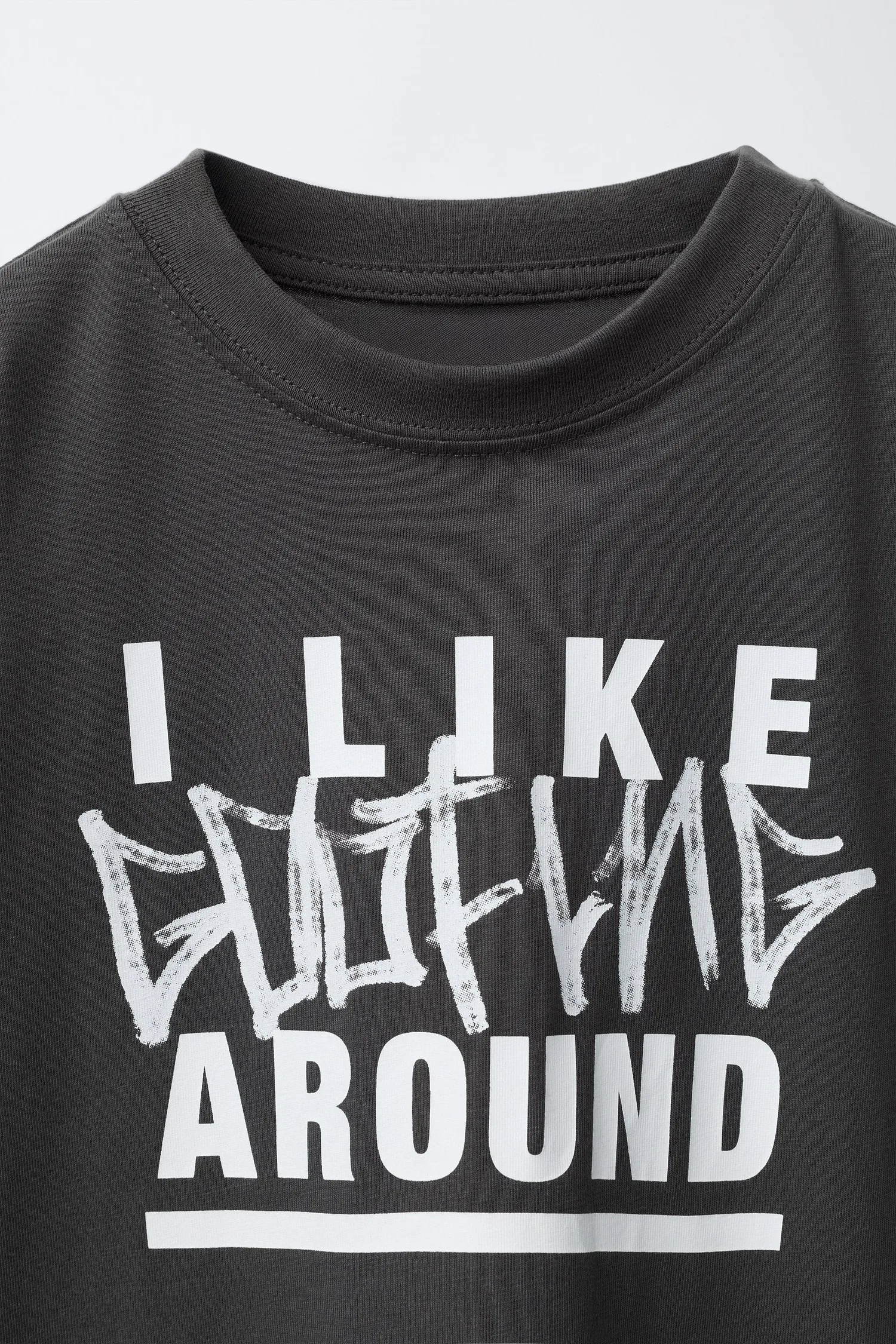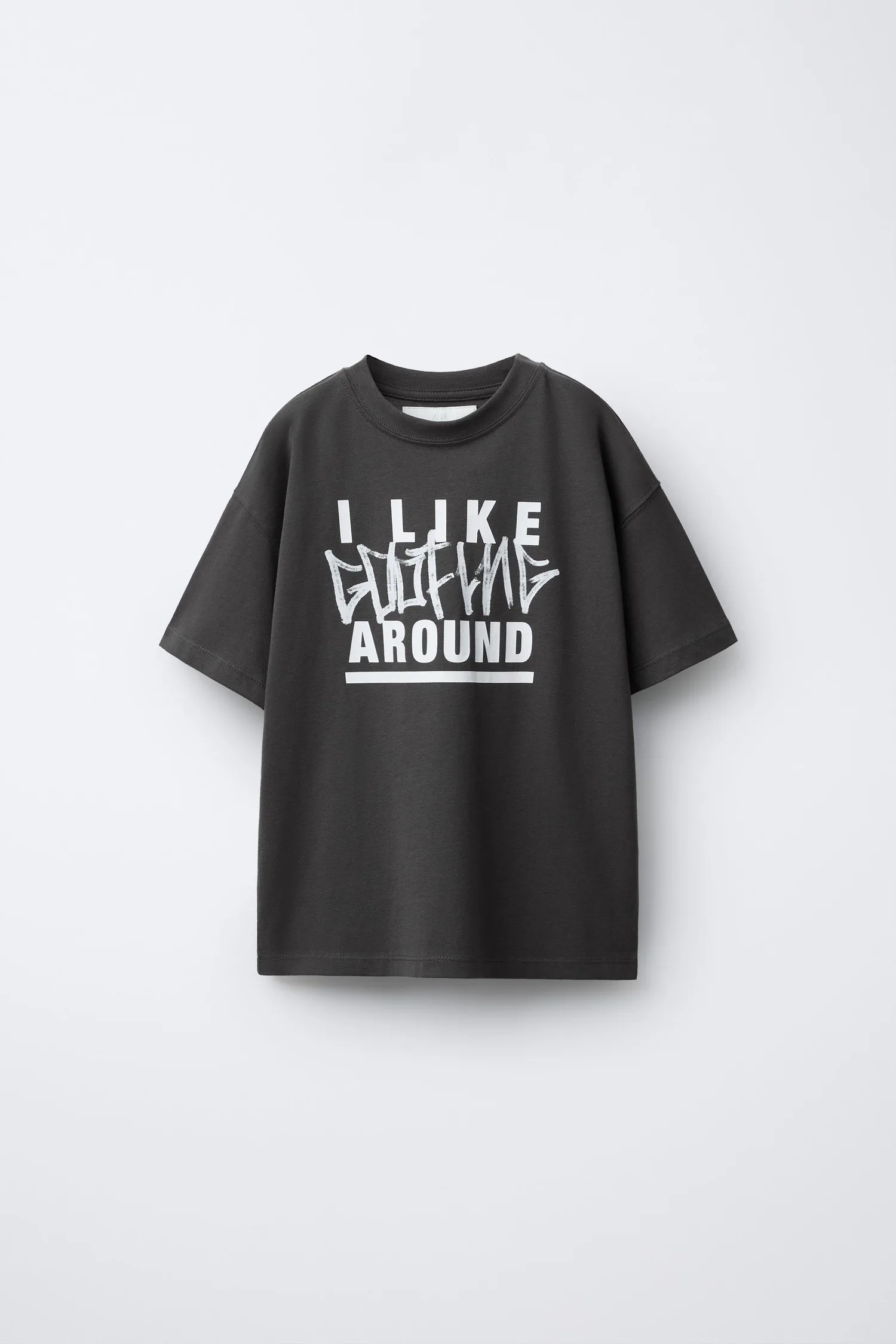 Футболка с коротким рукавом, круглым вырезом и принтом в виде граффити на передней части. Изготовлена из хлопка.