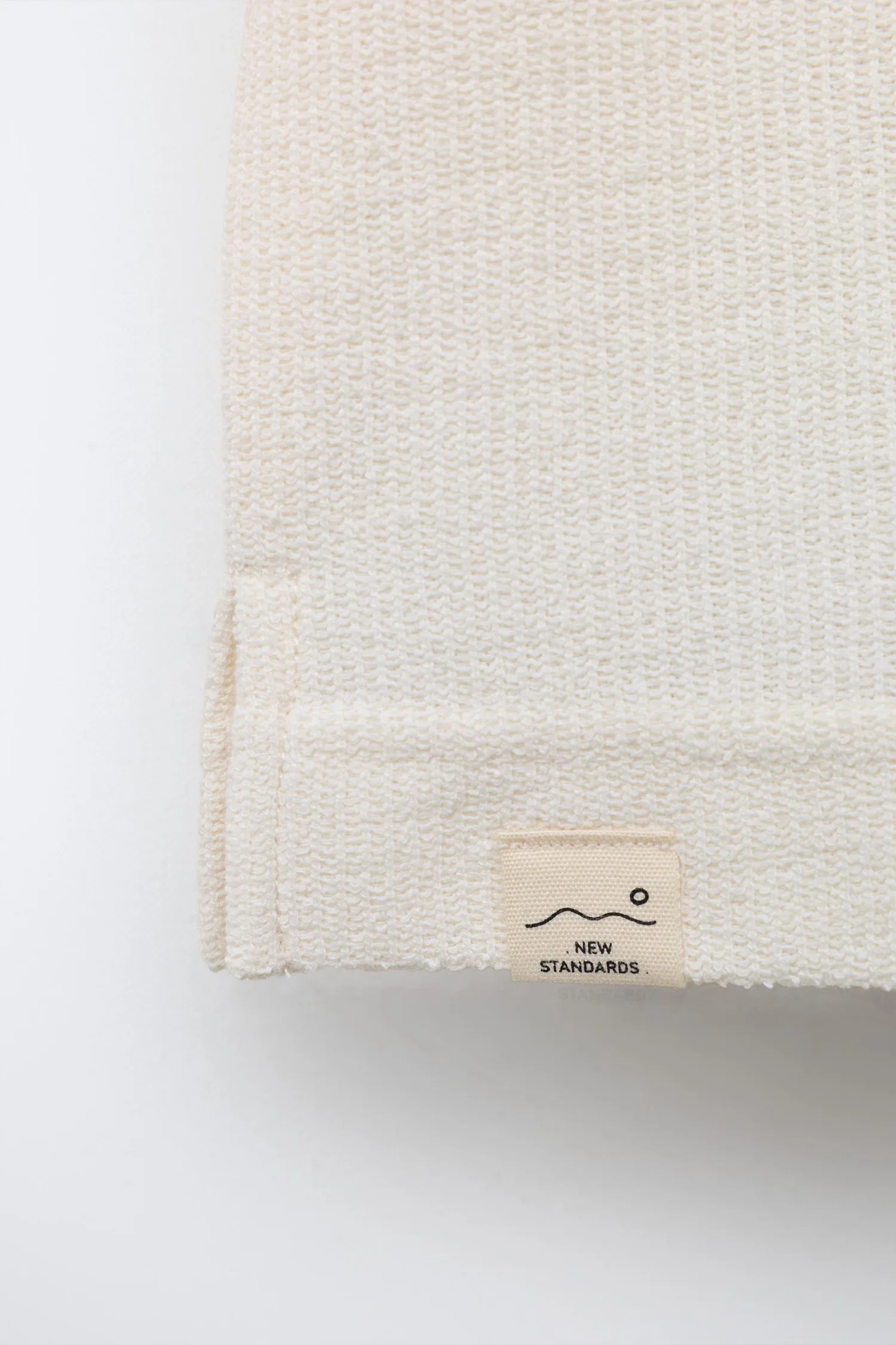 В настоящее время переработанный полиэстер в основном производится из отходов ПЭТ-пластика. Это тип пластика, широко используемый в различных изделиях, таких как пластиковые бутылки. Использование переработанных материалов помогает ограничить производство первичного полиэфирного волокна. Изделие сертифицировано по стандарту Recycled Claim Standard (RCS), который подтверждает содержание переработанных материалов и отслеживает его от источника до конечного продукта.