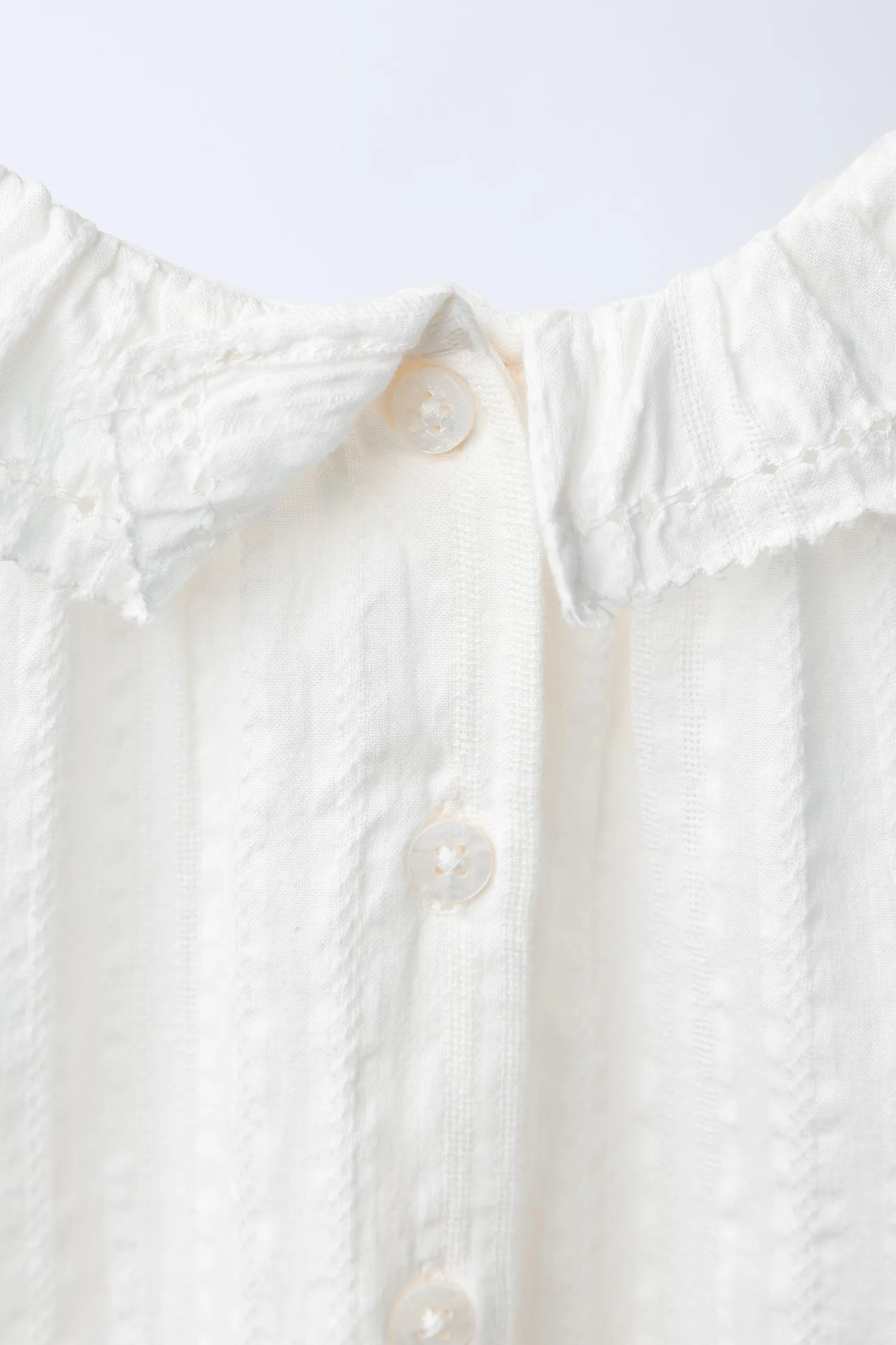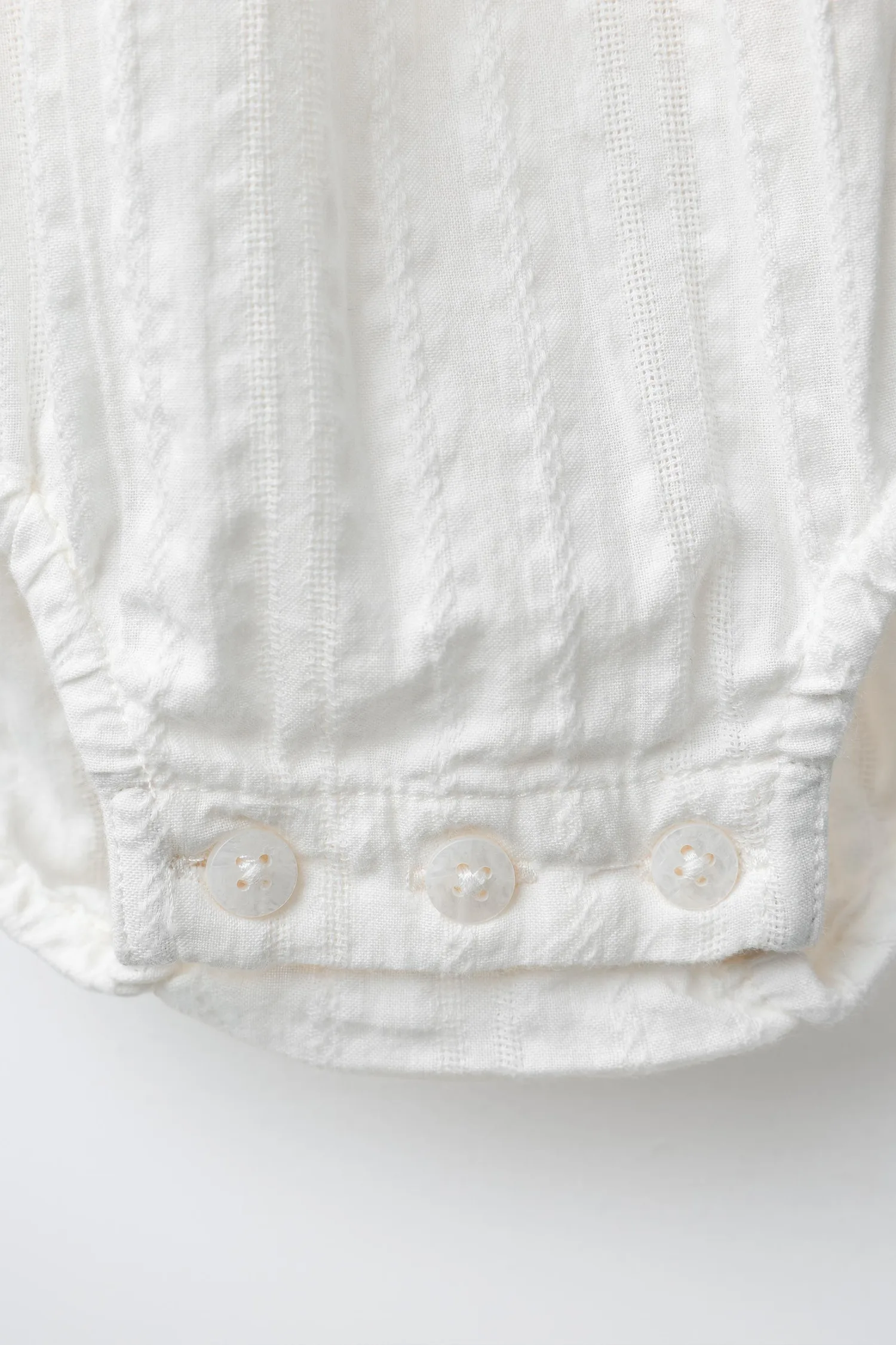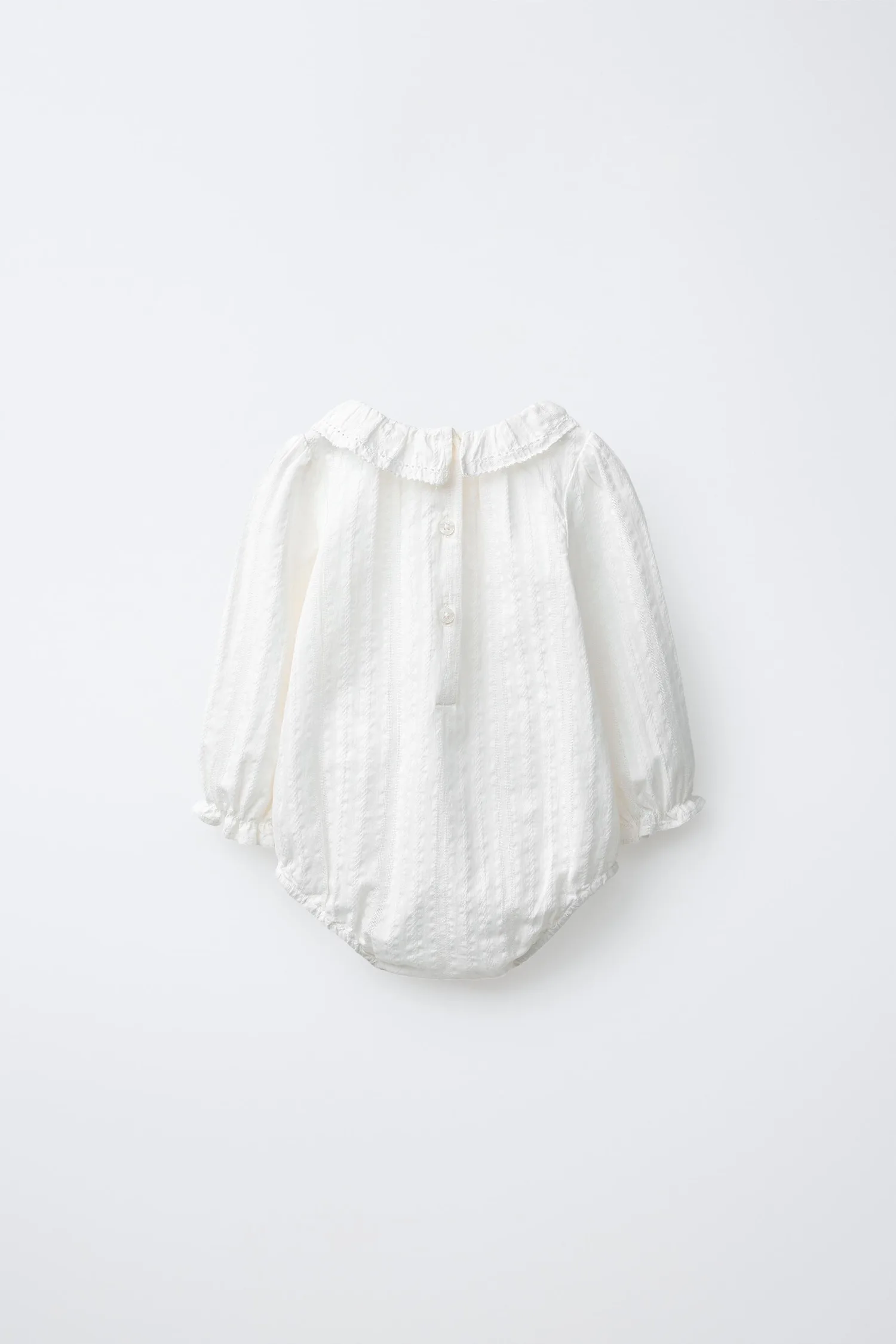 Боди с воротником-стойкой и длинными рукавами с эластичными манжетами. Застежка на пуговицы сзади и снизу.