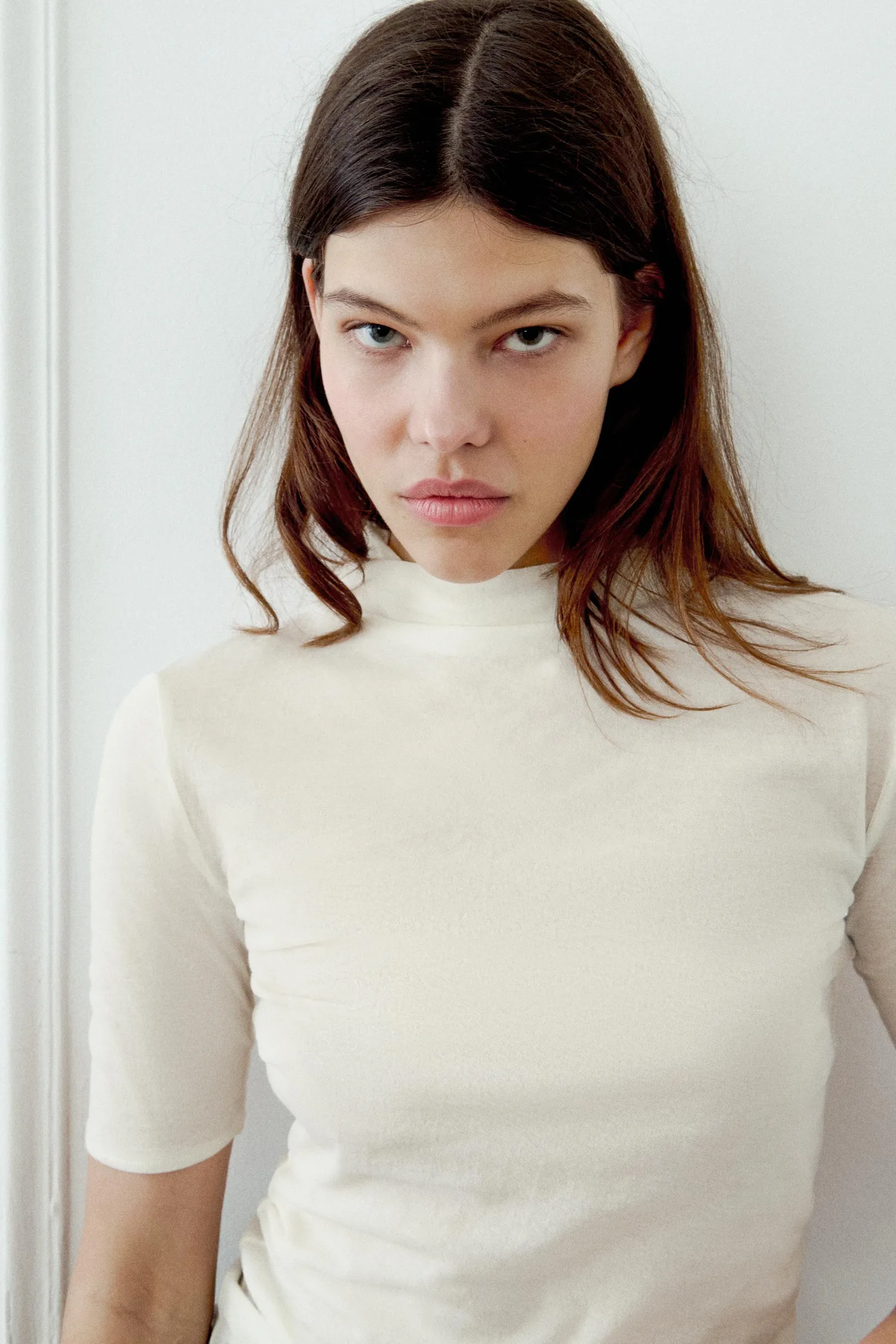 Топ с высоким воротником, основная ткань - 100% хлопок. Короткий рукав.