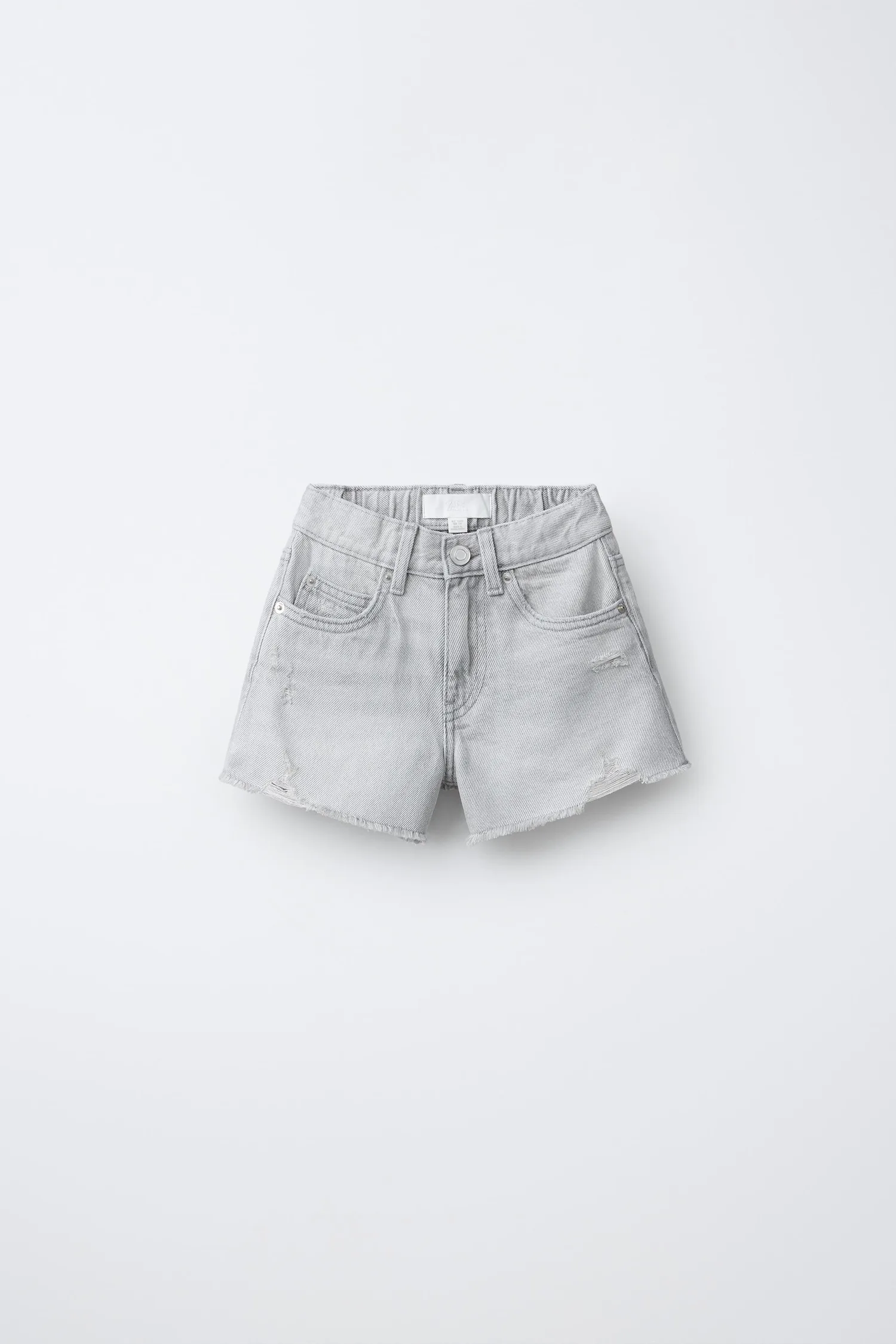 Джинсовые шорты-бермуды с регулируемым внутренним поясом и застежкой на пуговицы спереди. Имеют передние карманы, накладные карманы сзади, рваные детали и потертые края.