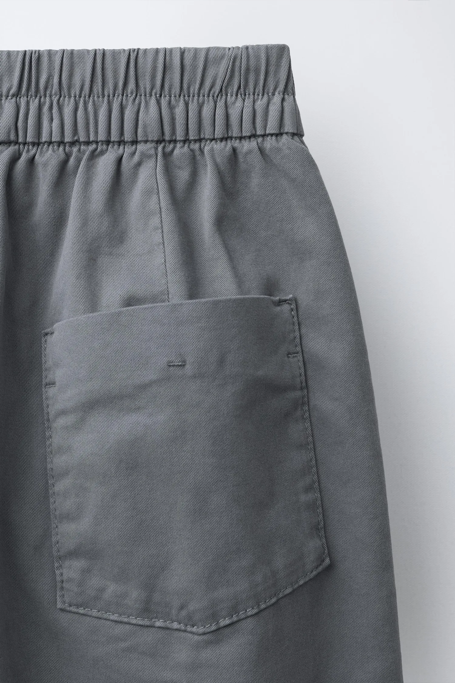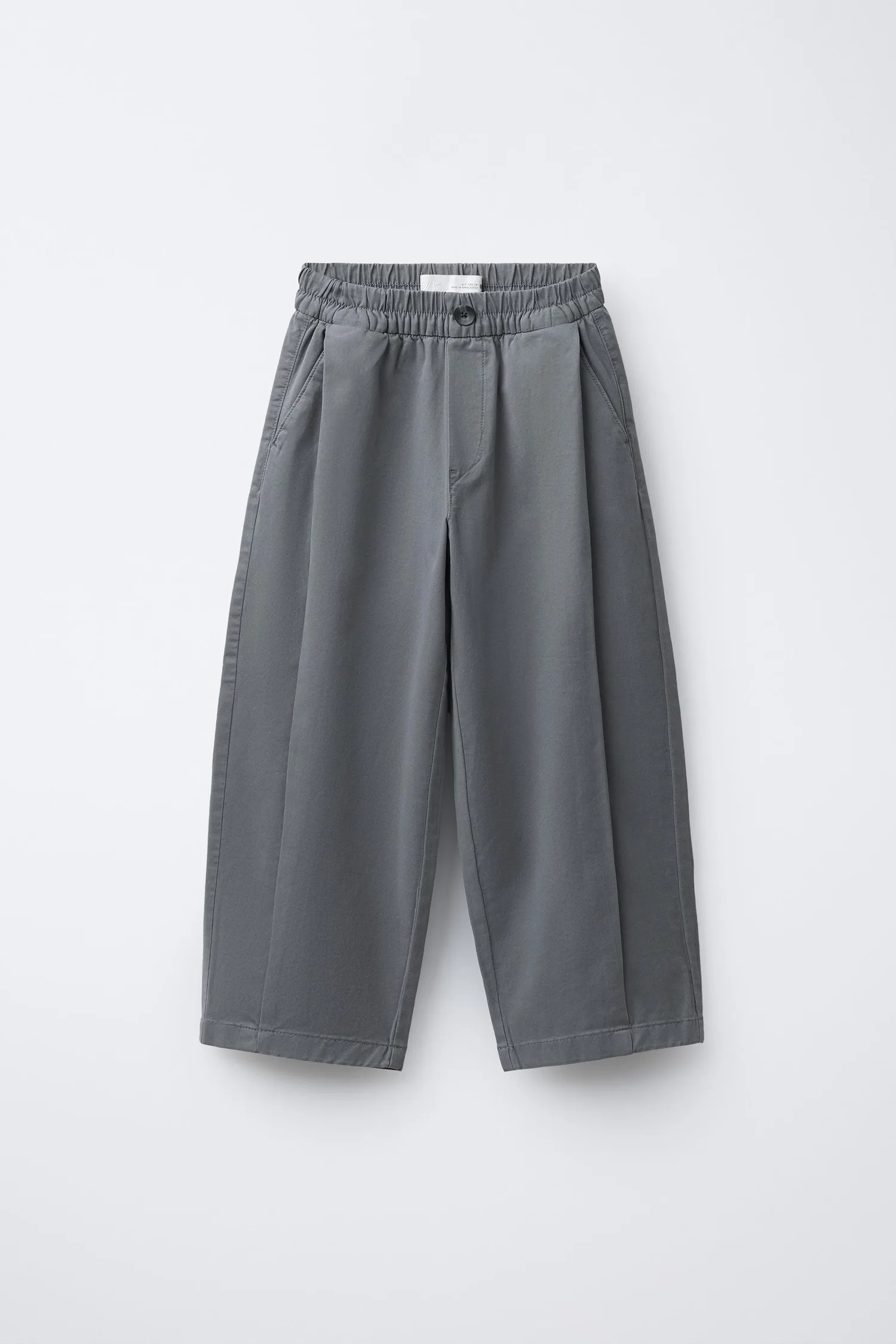 Брюки-буфы с эластичным поясом и застежкой на пуговицу спереди. Передние карманы и накладной карман сзади. Складки спереди.