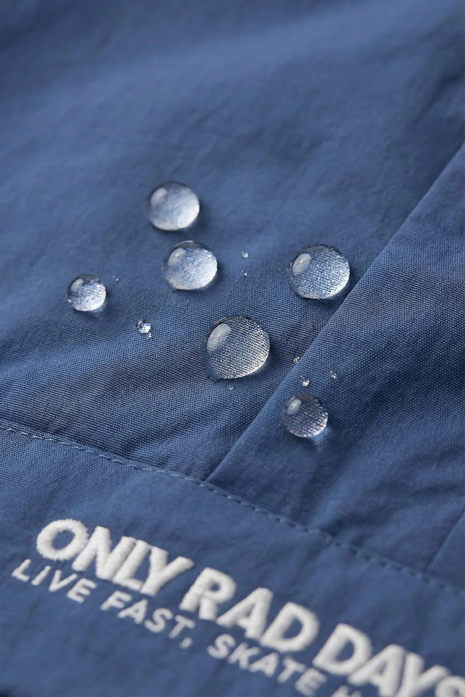 Дождевик с накладными карманами из специальной водоотталкивающей ткани. Имеет капюшон с ограничителями и длинные рукава. Эластичные манжеты на резинке. Застежка на молнию и кнопки на кокетке, скрытая планкой. Передние карманы на молнии, скрытые клапаном. Вышитая надпись спереди и на спине.
