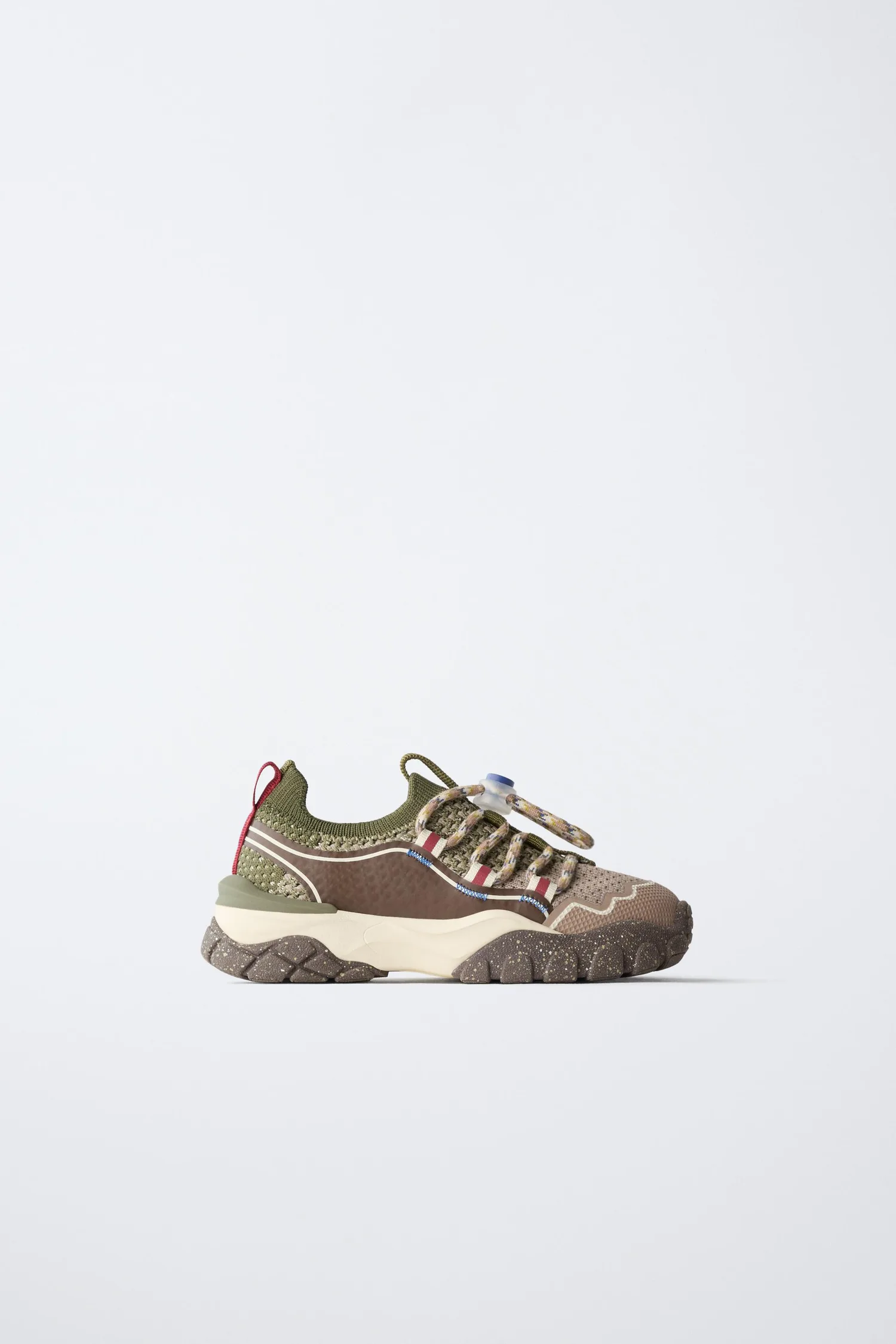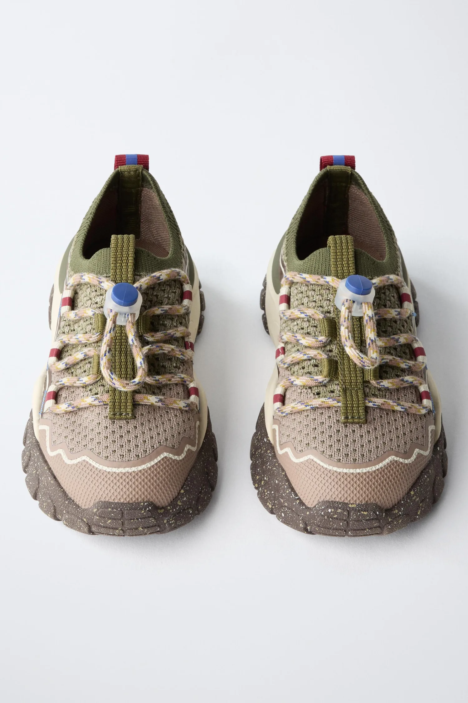 Кроссовки-носки из эластичной ткани. Регулируемая шнуровка со стопором. Петли спереди и сзади для удобства надевания. Внутренняя подошва OrthoLite. Резиновая подошва с зубцами.