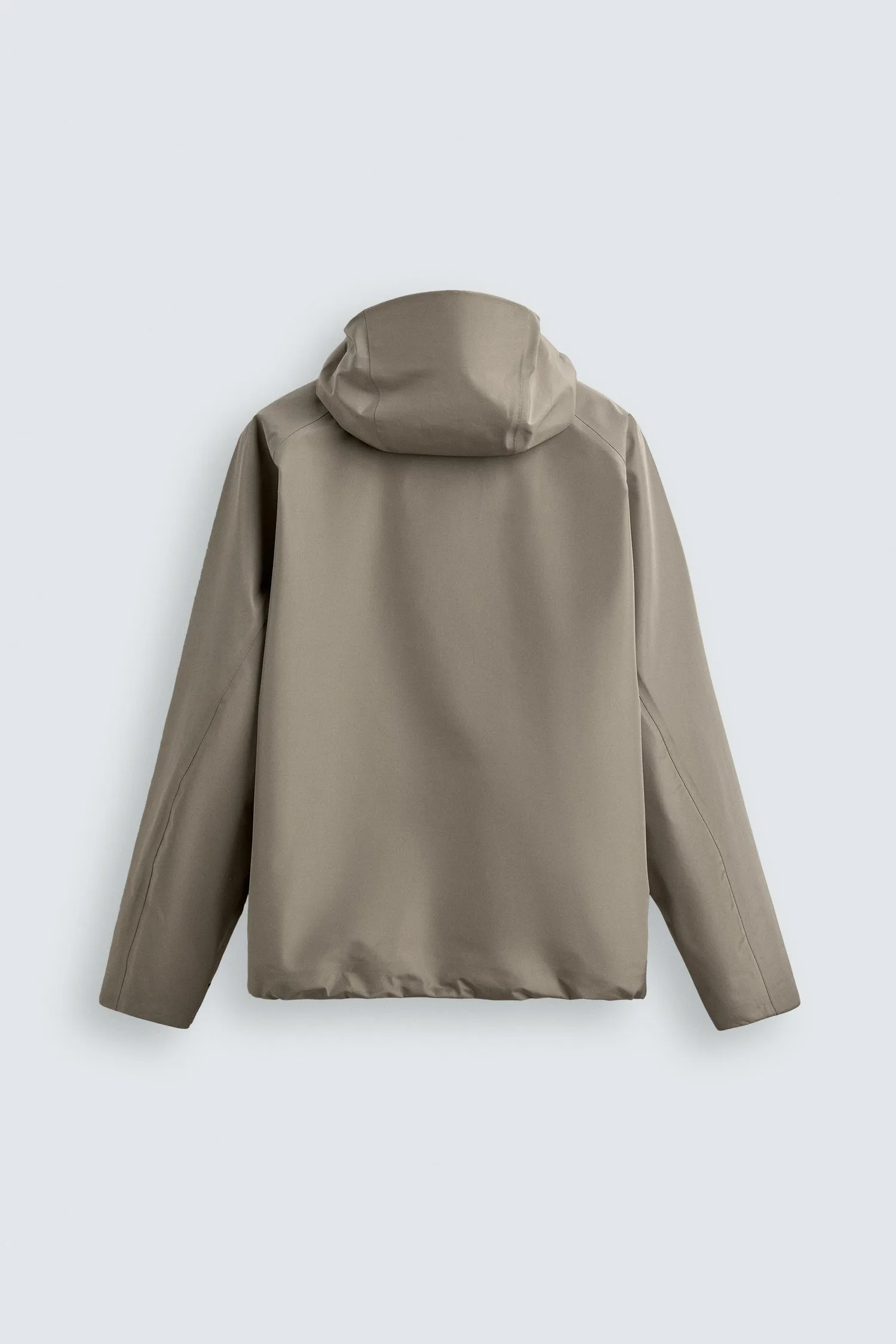 Спортивная куртка стандартного кроя из трехслойной технической ткани с защитной мембраной. Ткань водонепроницаема ≥5K. Термосварные швы для повышения водонепроницаемости.