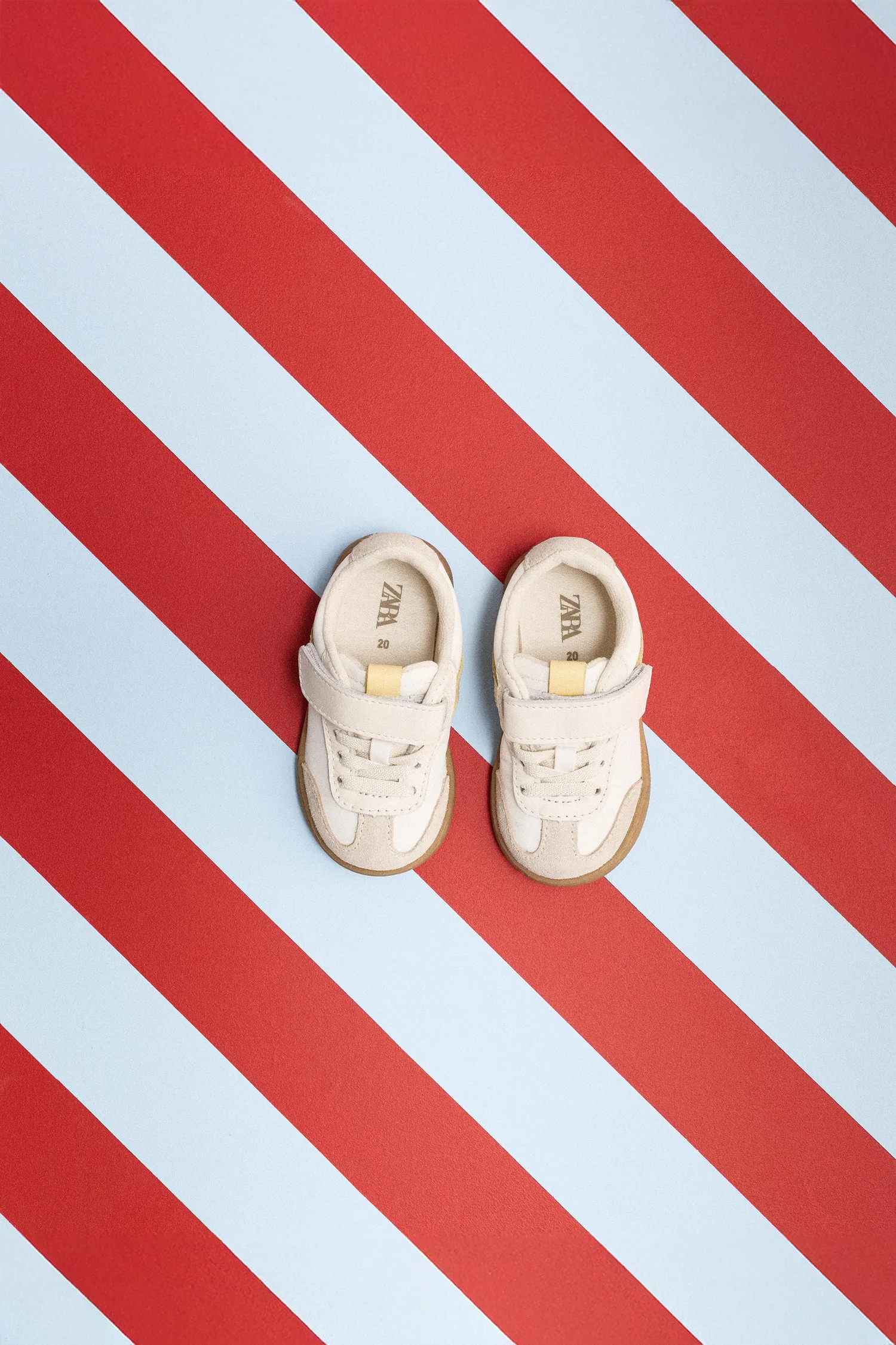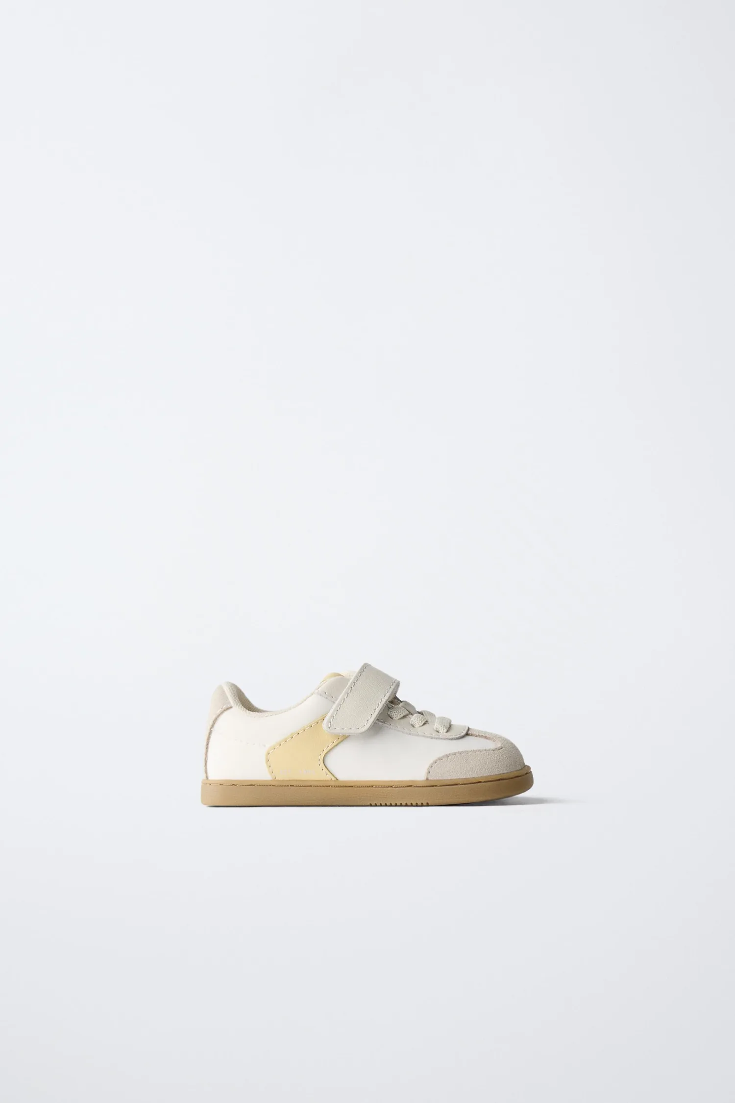 Кроссовки в стиле кедов из комбинации кожи с контрастными цветными деталями. Эластичные шнурки и клейкая лента на подъеме. Гибкая стелька. Резиновая подошва.