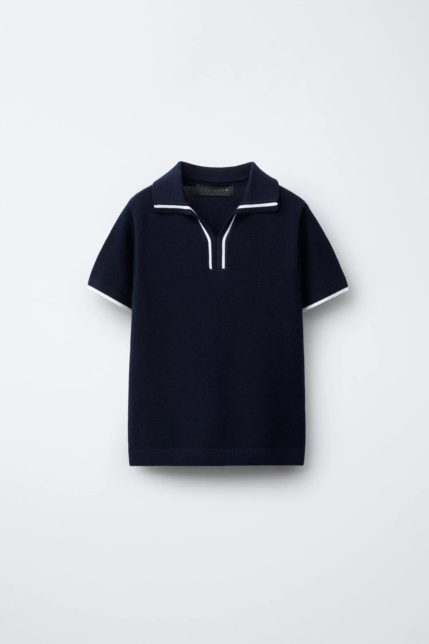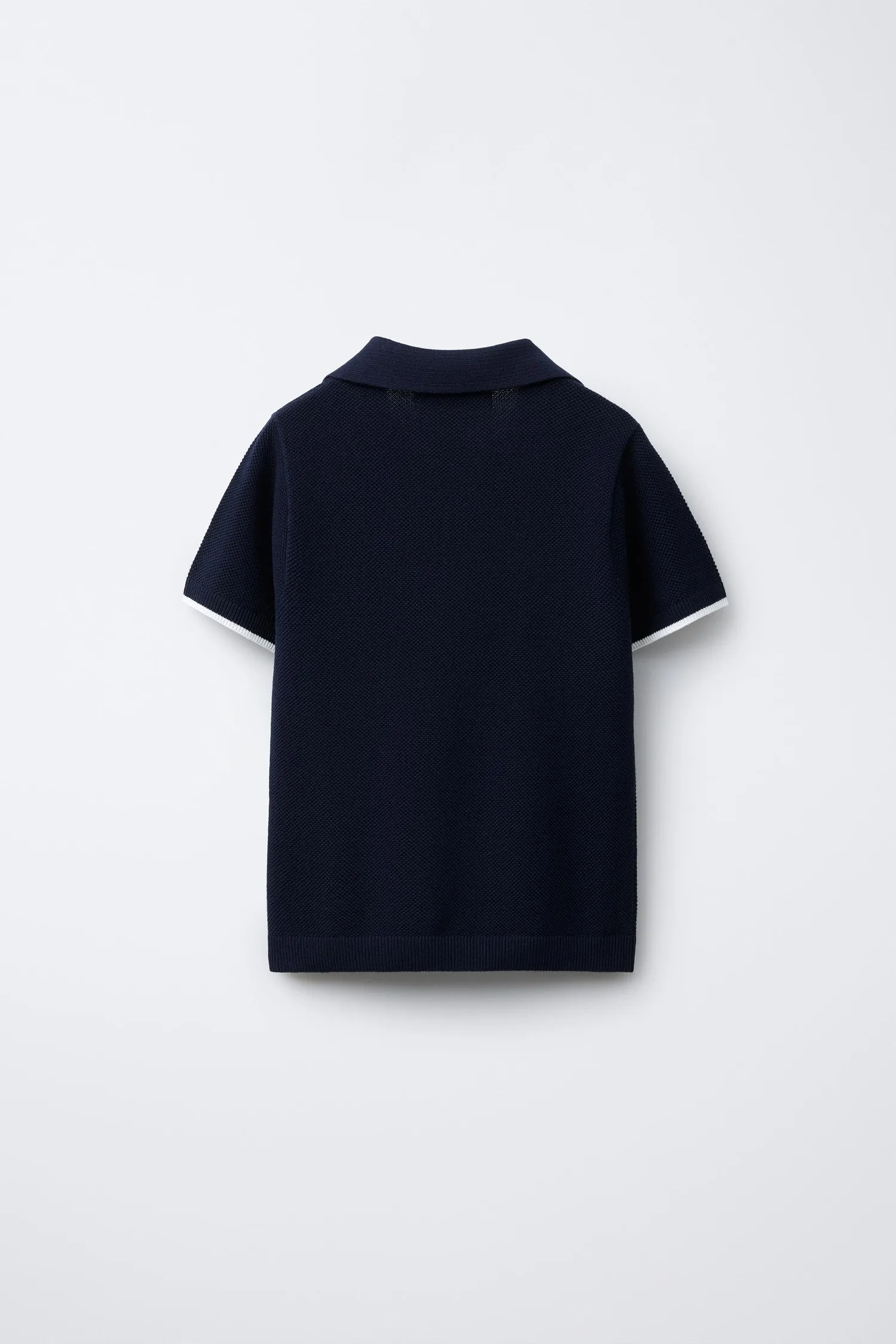 Рубашка-поло из трикотажа пике Zara, темно-синий 3 746₽