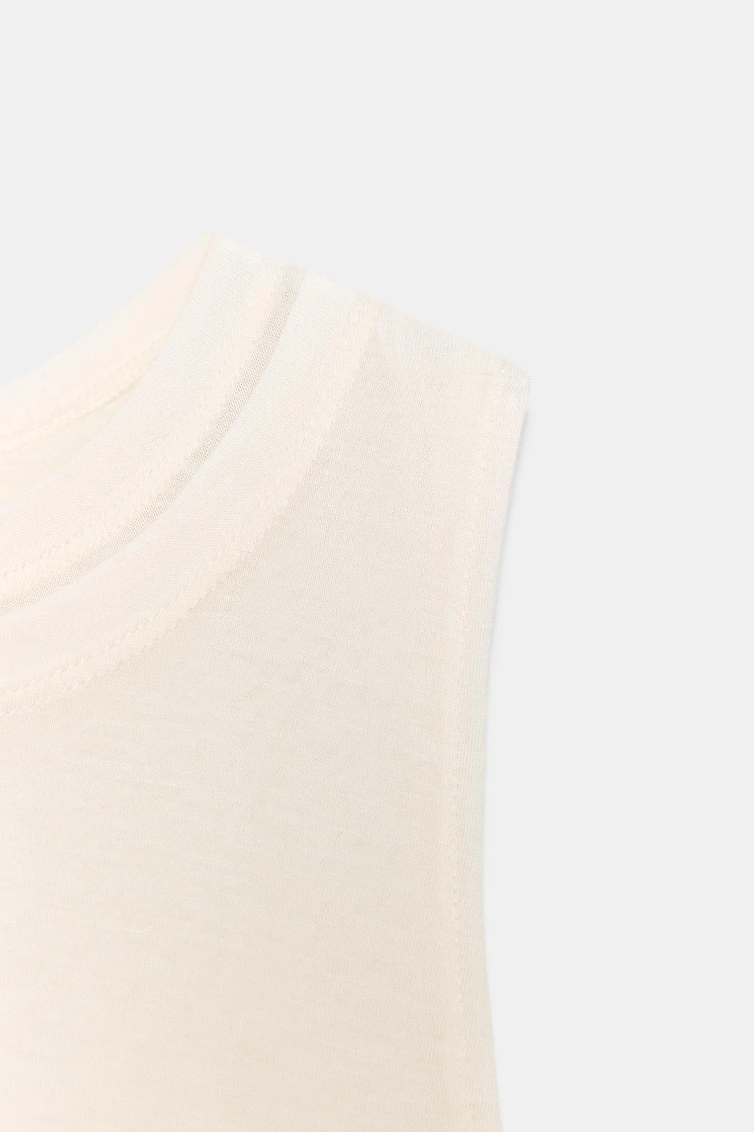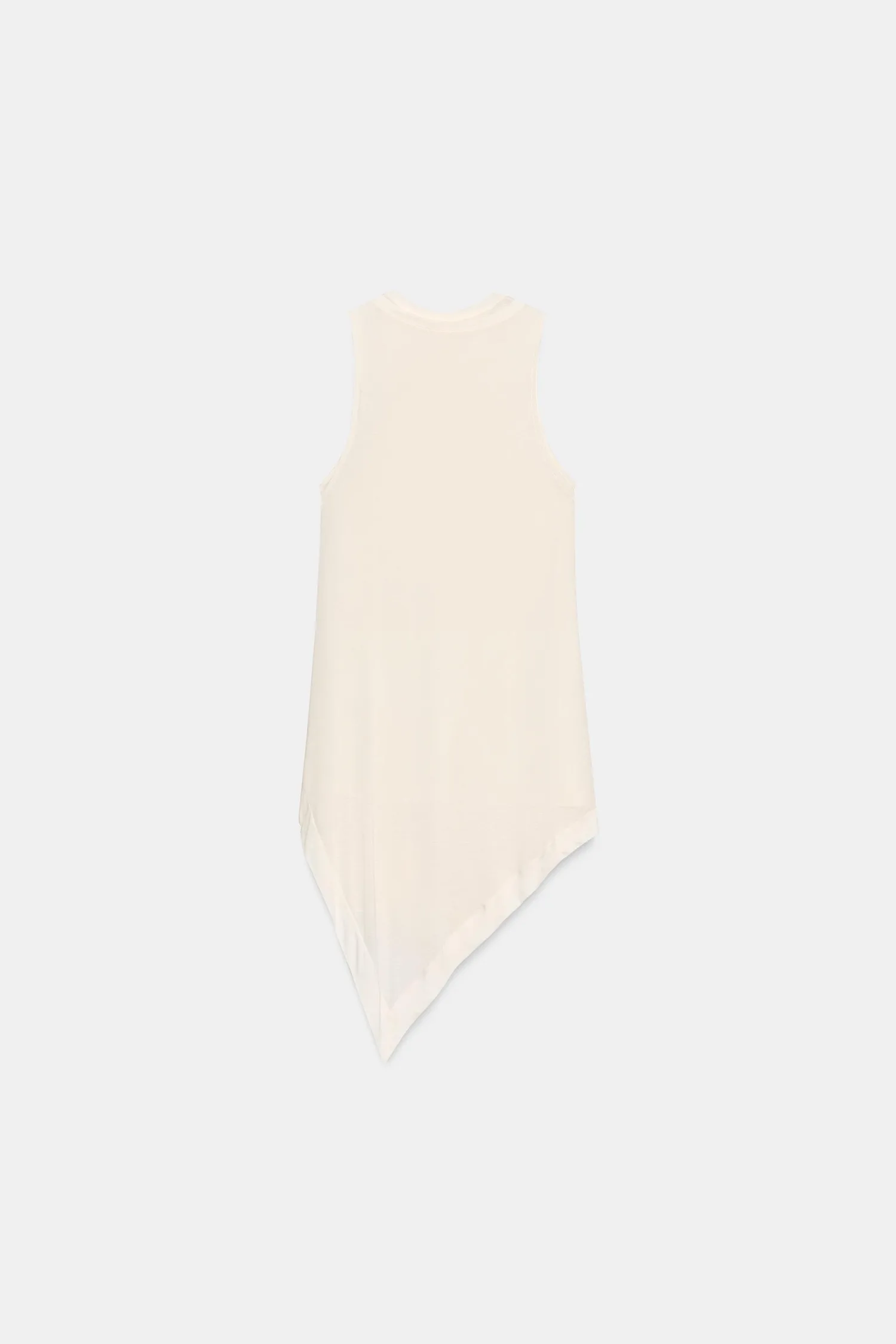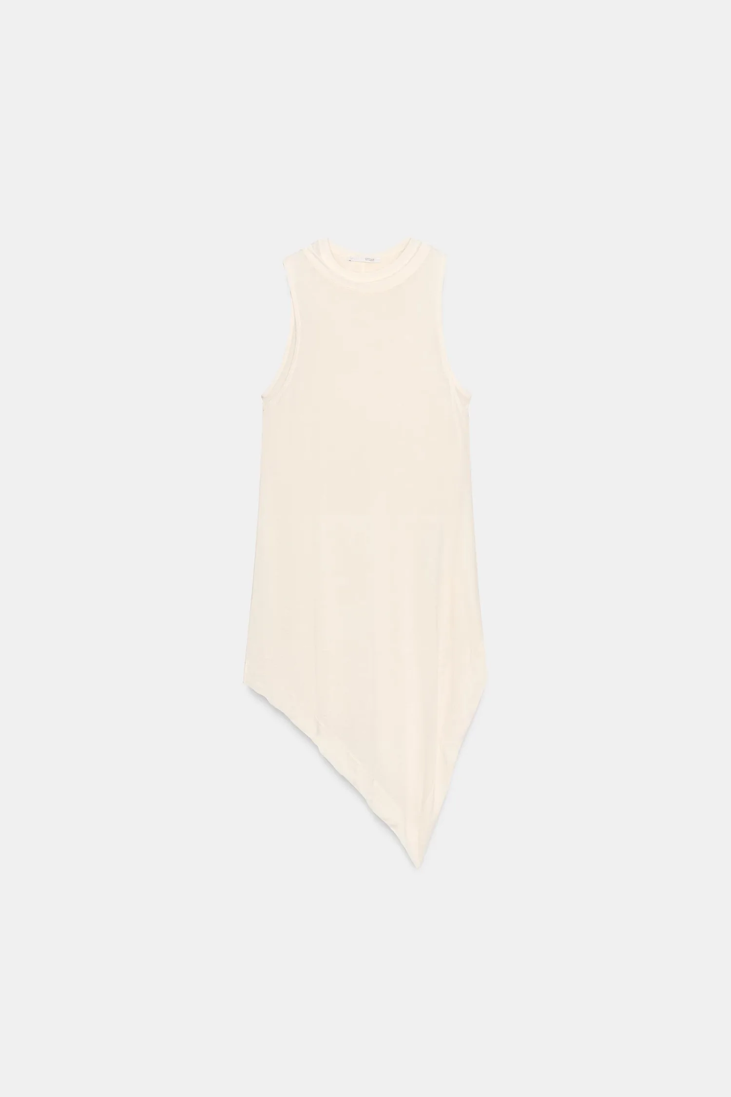 Топ из ткани, основной частью которой является лиоцелловая пряжа. Круглый вырез и без рукавов. Двойной эффект. Асимметричный подол.