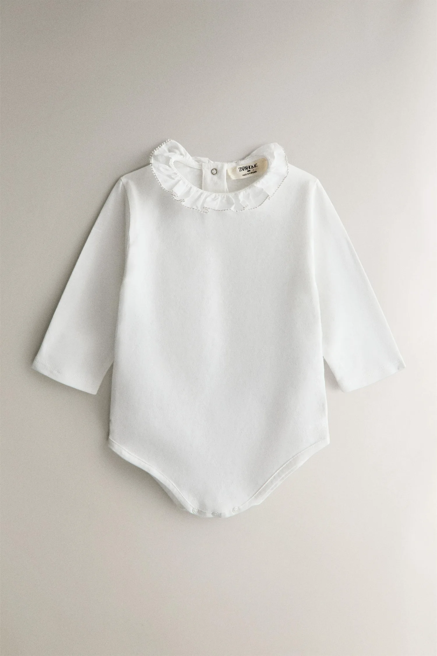 Детский боди с длинными рукавами, из хлопка, с воротником-воланом.