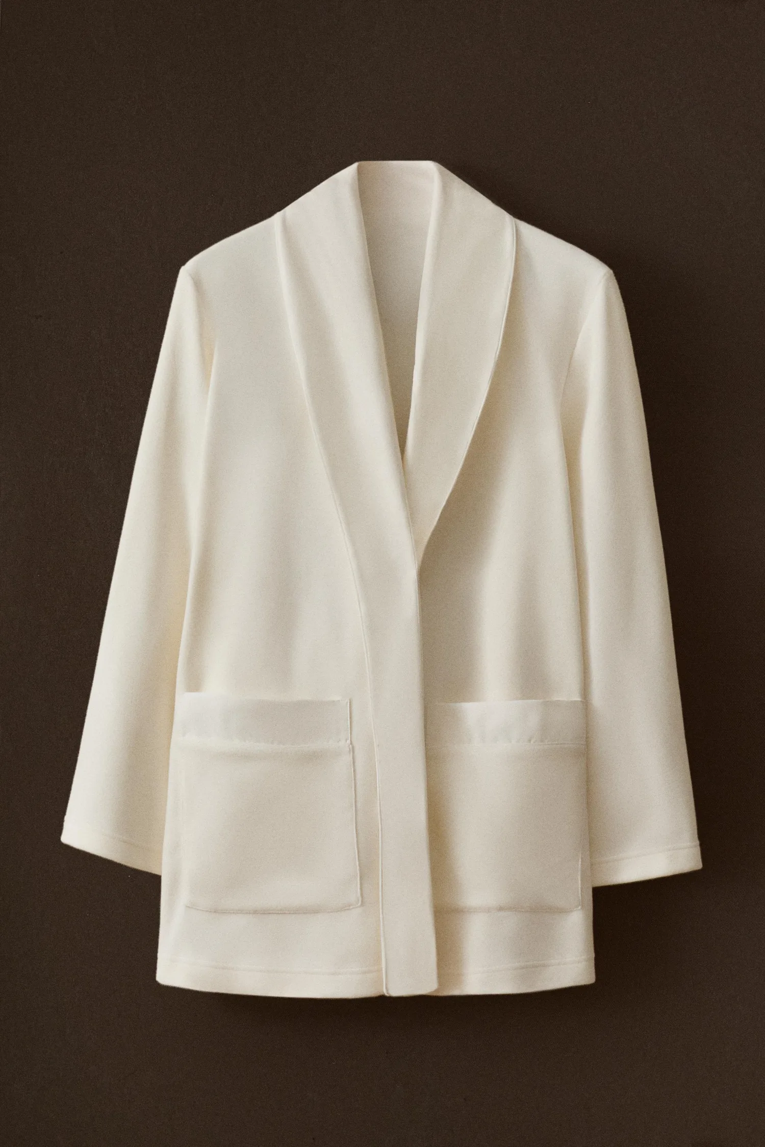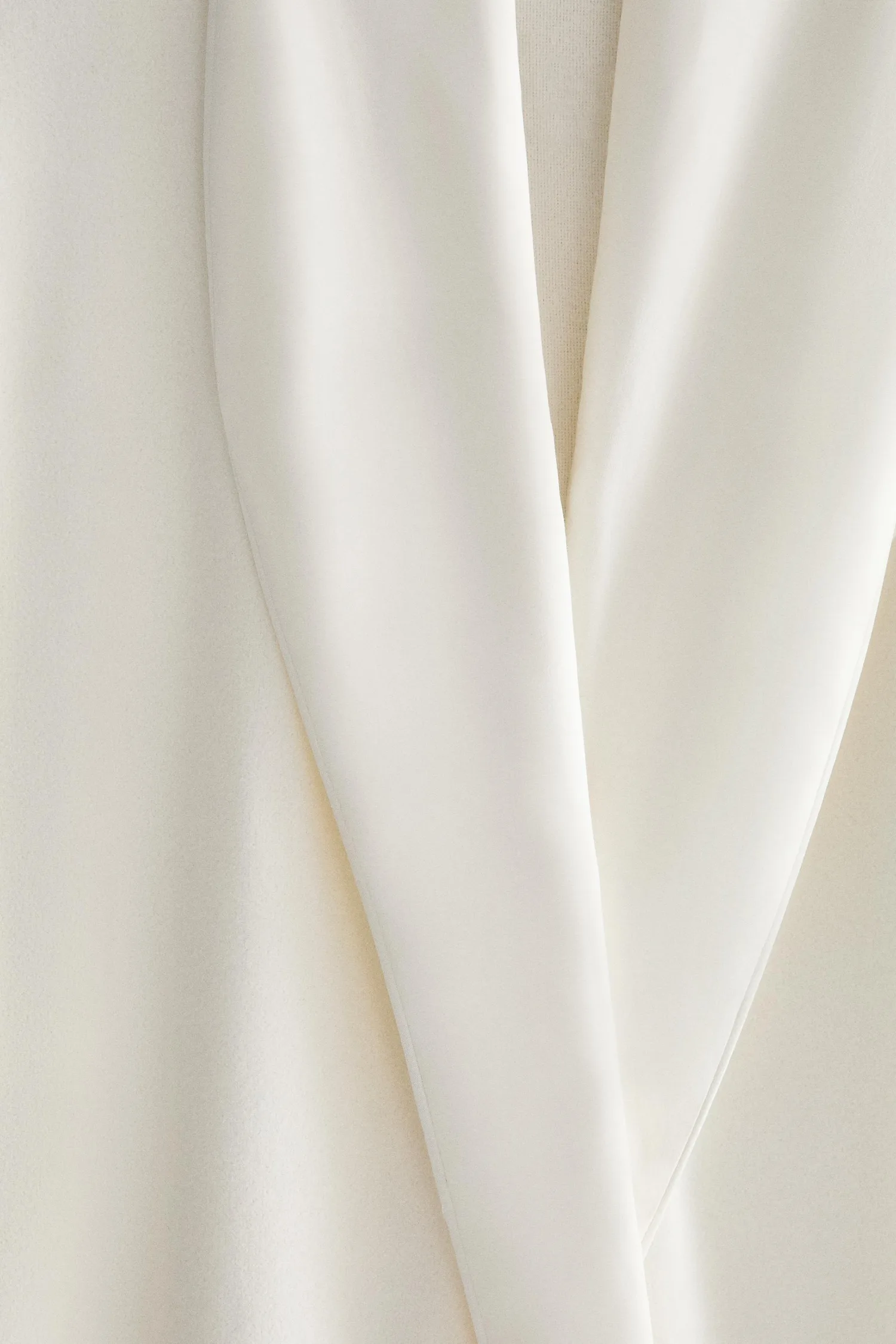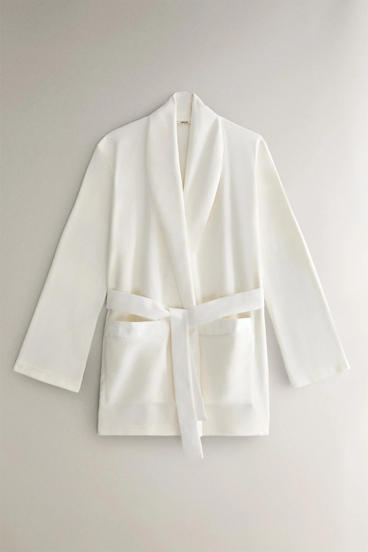 Халат с длинными рукавами из флиса цвета экрю с поясом.