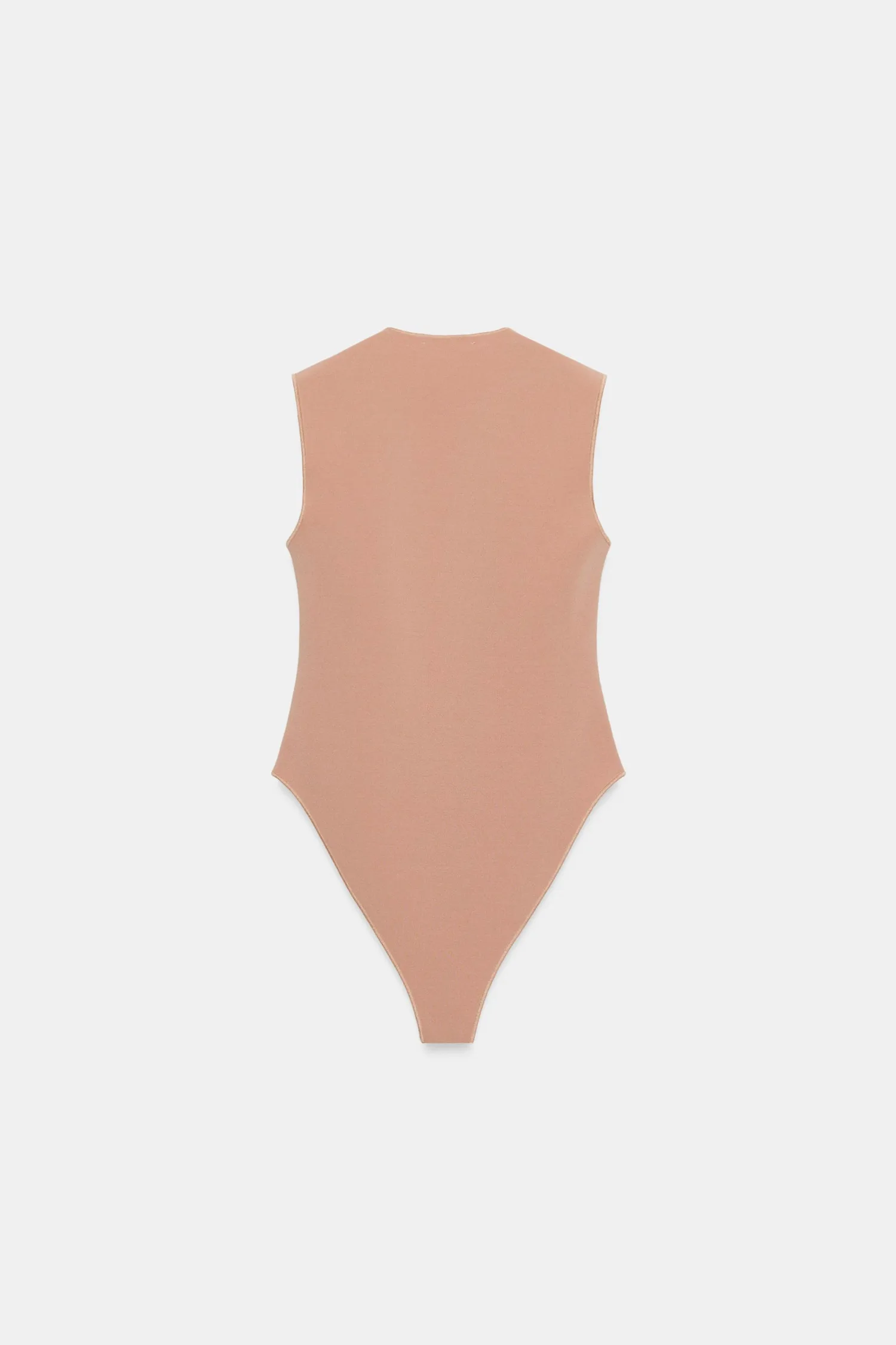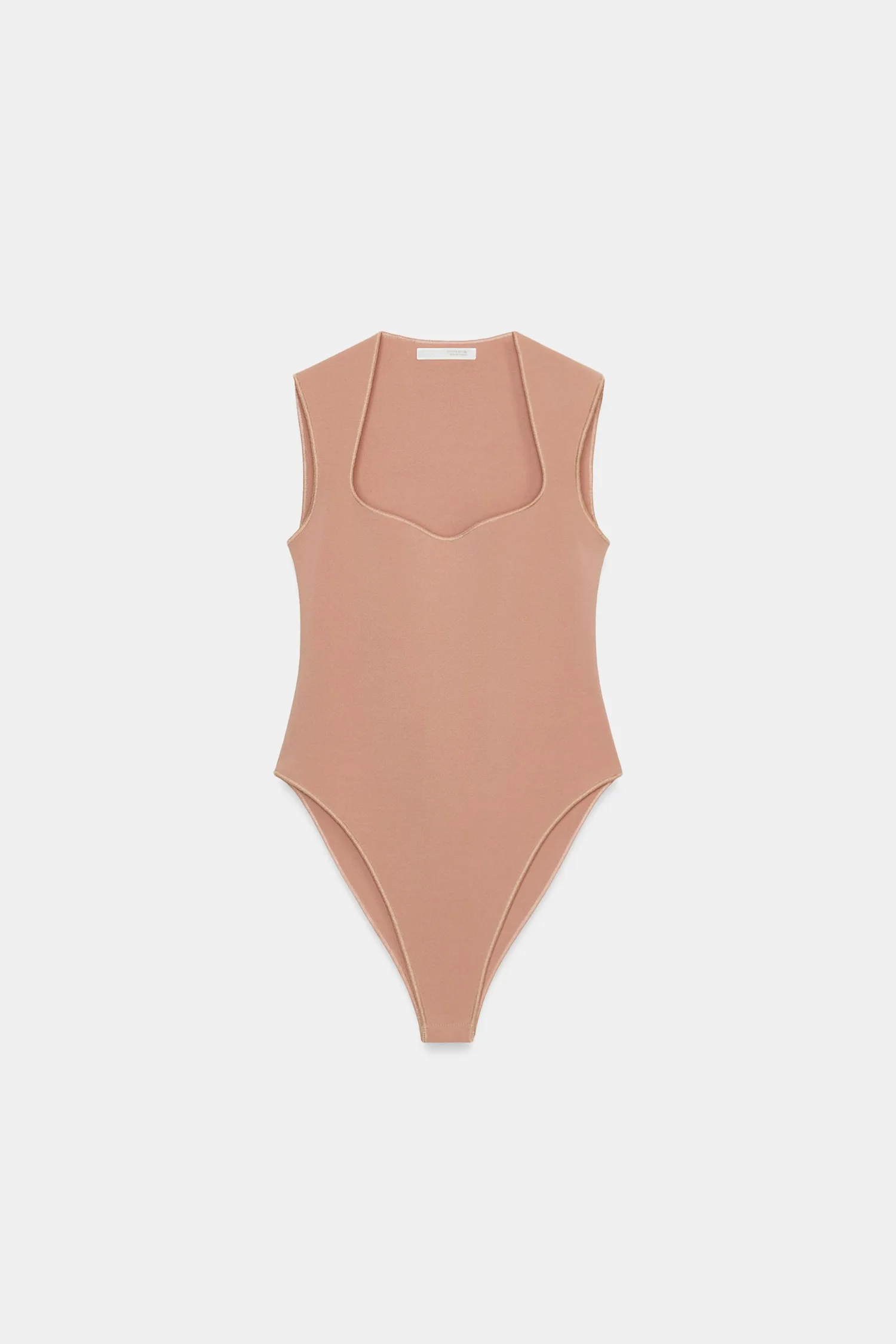 Боди из эластичной ткани. С квадратным вырезом и без рукавов. Застежка на кнопки внизу.
