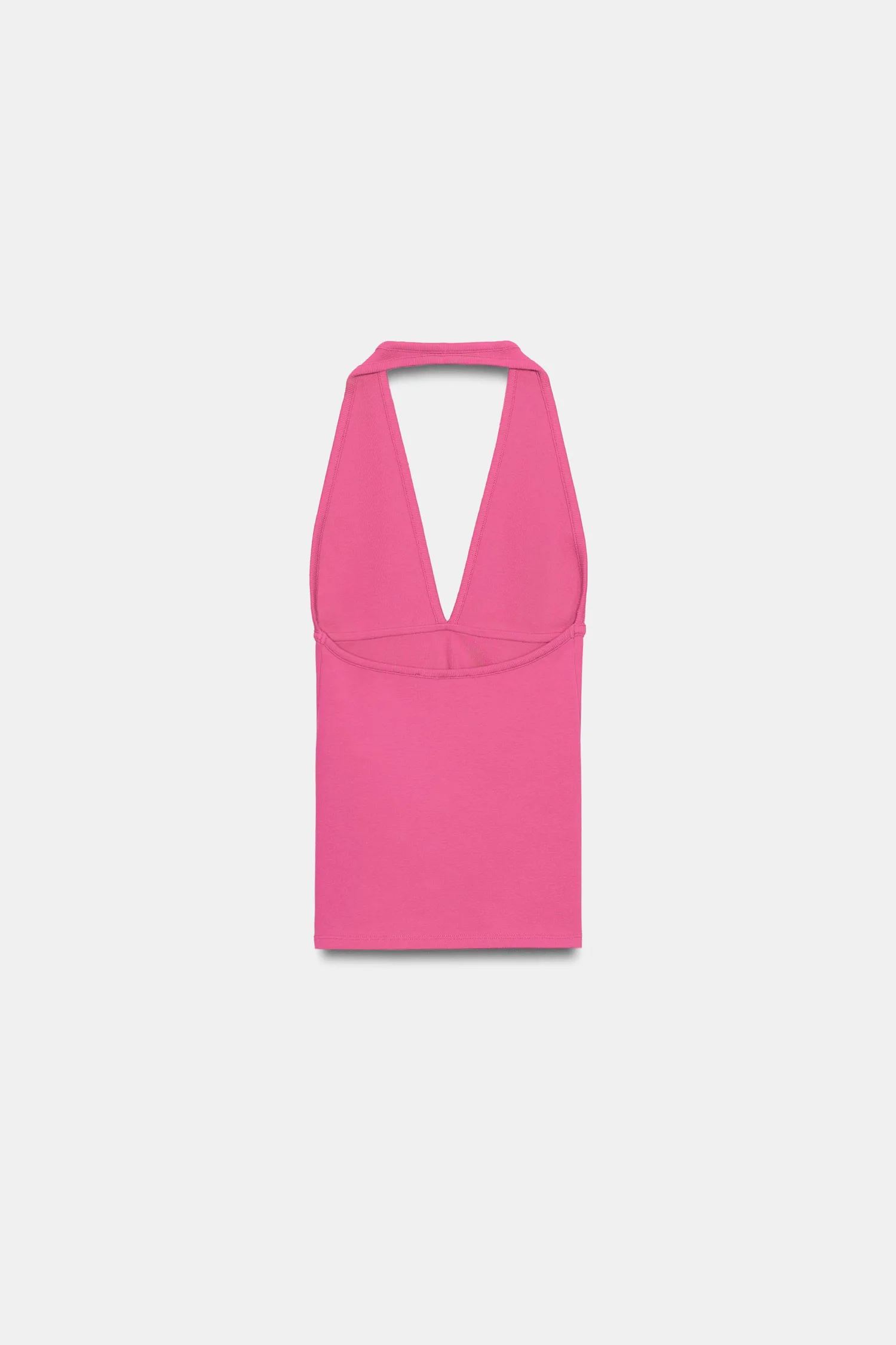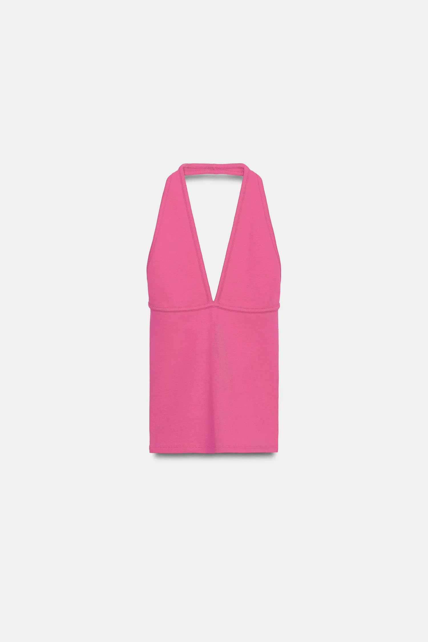 Топ из смесовой хлопковой ткани. Воротник-халтер и V-образный вырез.