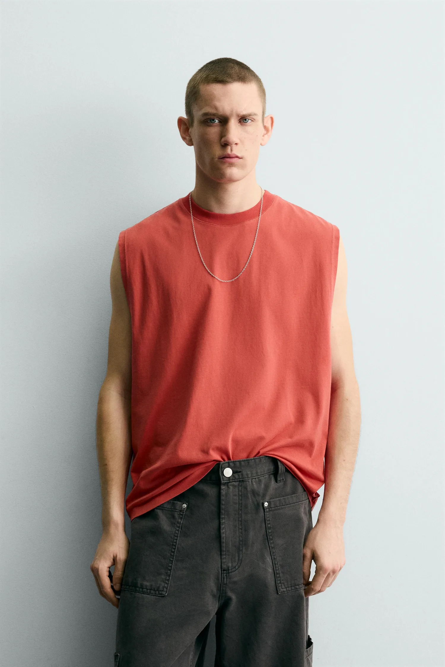 Свободный топ без рукавов с круглым вырезом. Эффект потертости. Изделие имеет уникальный вид благодаря специальной обработке. По этой причине его цвет может немного отличаться от фотографии.