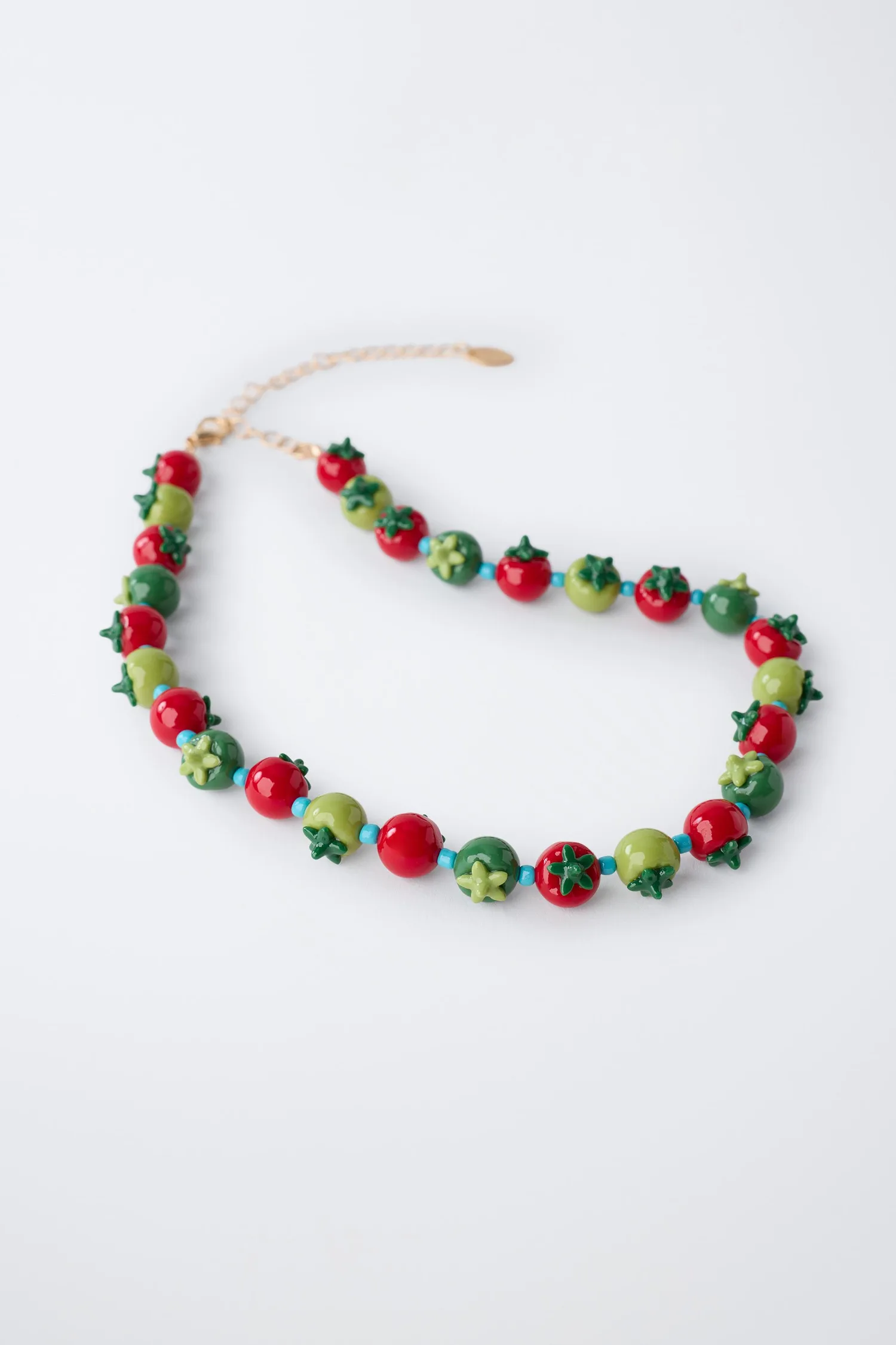 Ожерелье с регулируемой застежкой на затылке. Бусины в форме помидоров.