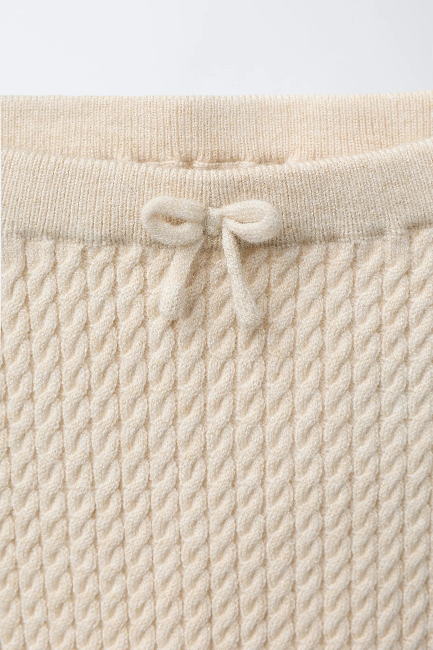 Леггинсы крупной вязки с эластичным поясом. С декоративным бантом спереди.